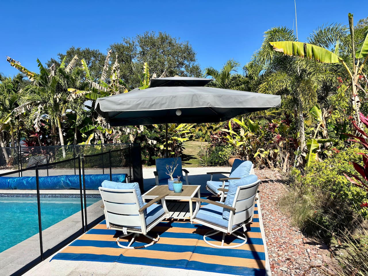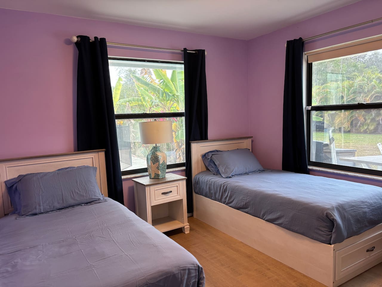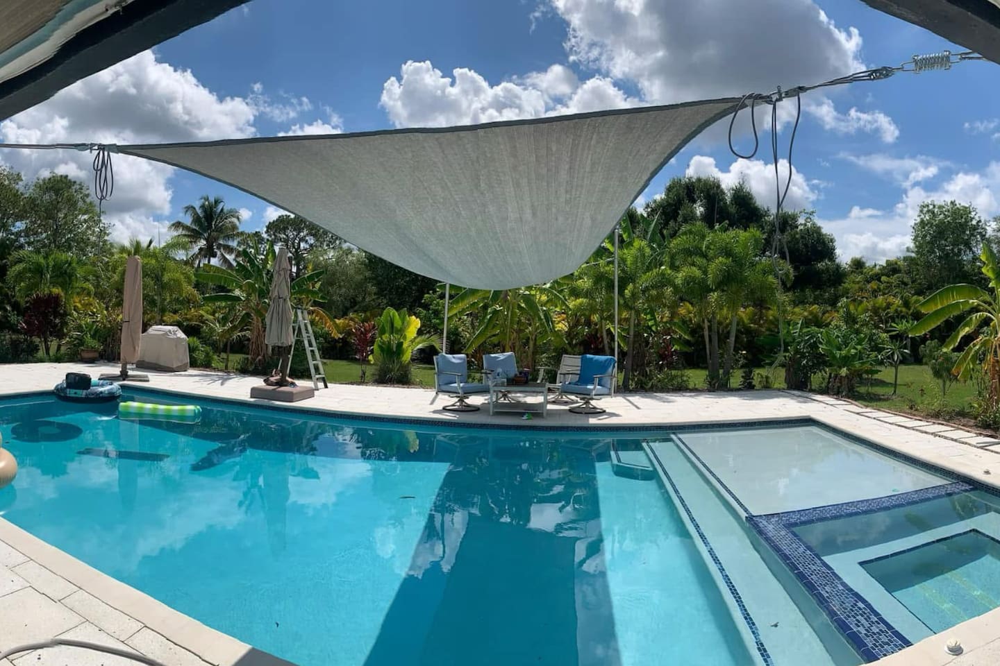 Modern Jupiter Farms Retreat | Resort-Style Heated Pool & Tropical Oasis | EV Chargers Welcome to your private Jupiter Farms escape—where modern luxury meets laid-back Florida living. This beautifully renovated home sits on an oversized, lush property surrounded by tropical foliage, offering privacy, space, and resort-style amenities perfect for relaxing or entertaining. Step outside to your huge oversized heated pool, complete with a sun deck, sun loungers, outdoor umbrellas, and a baby safety pool fence for peace of mind. Enjoy evenings under the stars around the fire pit, or gather for meals in the outdoor dining area overlooking the expansive yard—ideal for families, couples, or group getaways. Inside, the home features a modern open floor plan filled with natural light from large windows throughout. The gourmet modern kitchen is fully equipped and perfect for home-cooked meals or hosting. Relax in the living room with a large smart flat-screen TV, or unwind in thoughtfully designed spaces with tons of storage throughout. The primary bedroom is a true retreat, featuring floor-to-ceiling glass sliders that open directly to pool views. The primary bathroom offers a sleek walk-in shower, while the second bathroom includes a soaking bathtub—perfect after a day in the sun. Bedroom 1: King Bed Bedroom 2: Queen Bed Bedroom 3: 2 Twin Beds Bedroom 4: 2 Twin Beds We also have a pack n play at the house for your use. Additional highlights include: * Modern, fully renovated interiors * EV Chargers for your car * Smart lock for easy self check-in * Oversized yard with tropical landscaping * Bright, airy design with indoor-outdoor flow * Kid/Baby pool fence for safety Whether you’re here to relax poolside, enjoy nature, or explore everything Jupiter has to offer, this home delivers comfort, style, and unforgettable Florida vibes. Book your stay and experience Jupiter Farms in style.