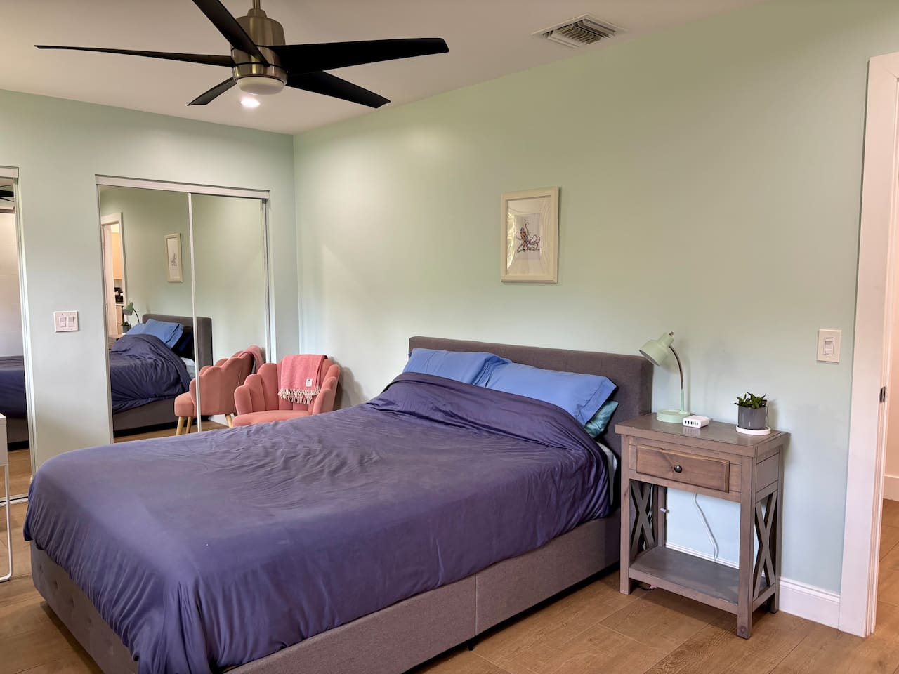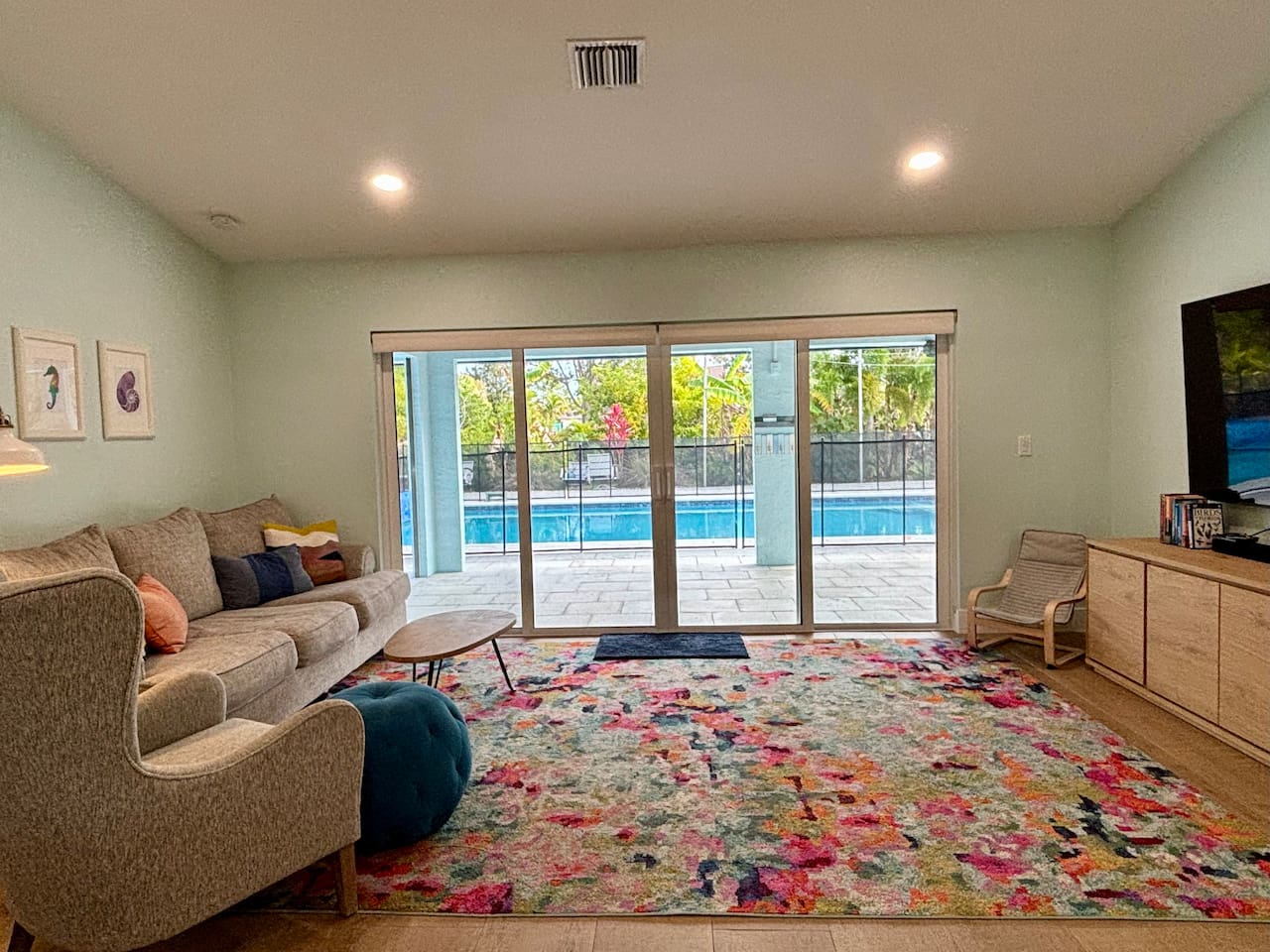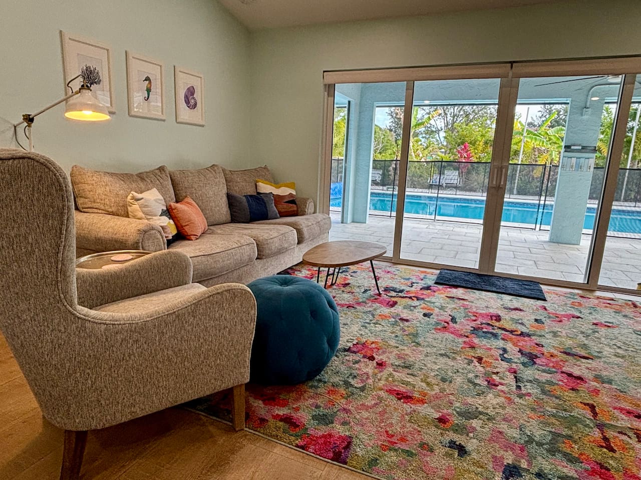 Modern Jupiter Farms Retreat | Resort-Style Heated Pool & Tropical Oasis | EV Chargers Welcome to your private Jupiter Farms escape—where modern luxury meets laid-back Florida living. This beautifully renovated home sits on an oversized, lush property surrounded by tropical foliage, offering privacy, space, and resort-style amenities perfect for relaxing or entertaining. Step outside to your huge oversized heated pool, complete with a sun deck, sun loungers, outdoor umbrellas, and a baby safety pool fence for peace of mind. Enjoy evenings under the stars around the fire pit, or gather for meals in the outdoor dining area overlooking the expansive yard—ideal for families, couples, or group getaways. Inside, the home features a modern open floor plan filled with natural light from large windows throughout. The gourmet modern kitchen is fully equipped and perfect for home-cooked meals or hosting. Relax in the living room with a large smart flat-screen TV, or unwind in thoughtfully designed spaces with tons of storage throughout. The primary bedroom is a true retreat, featuring floor-to-ceiling glass sliders that open directly to pool views. The primary bathroom offers a sleek walk-in shower, while the second bathroom includes a soaking bathtub—perfect after a day in the sun. Bedroom 1: King Bed Bedroom 2: Queen Bed Bedroom 3: 2 Twin Beds Bedroom 4: 2 Twin Beds We also have a pack n play at the house for your use. Additional highlights include: * Modern, fully renovated interiors * EV Chargers for your car * Smart lock for easy self check-in * Oversized yard with tropical landscaping * Bright, airy design with indoor-outdoor flow * Kid/Baby pool fence for safety Whether you’re here to relax poolside, enjoy nature, or explore everything Jupiter has to offer, this home delivers comfort, style, and unforgettable Florida vibes. Book your stay and experience Jupiter Farms in style.