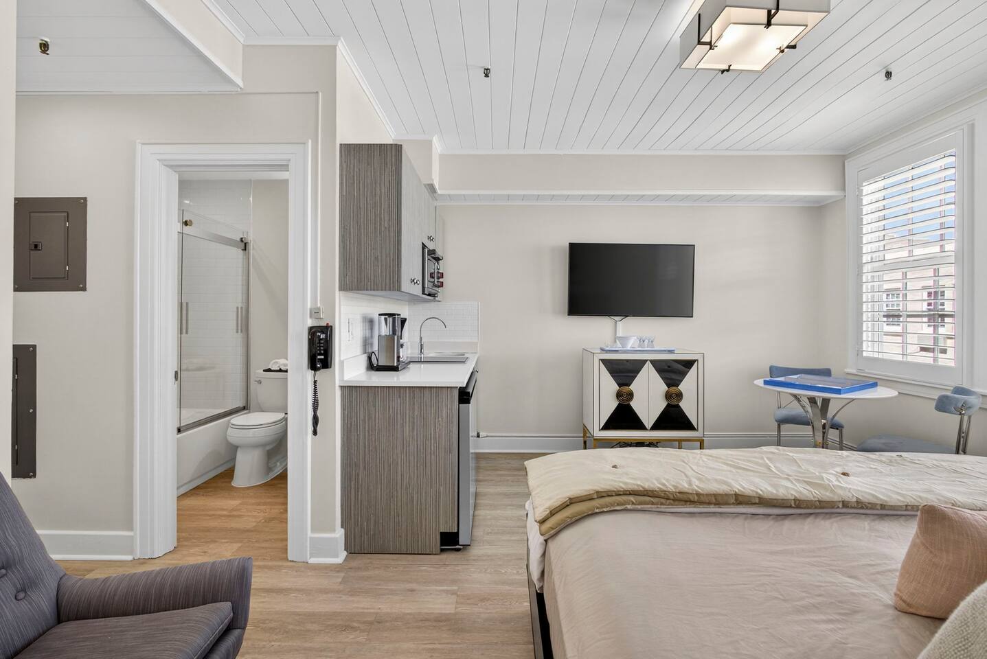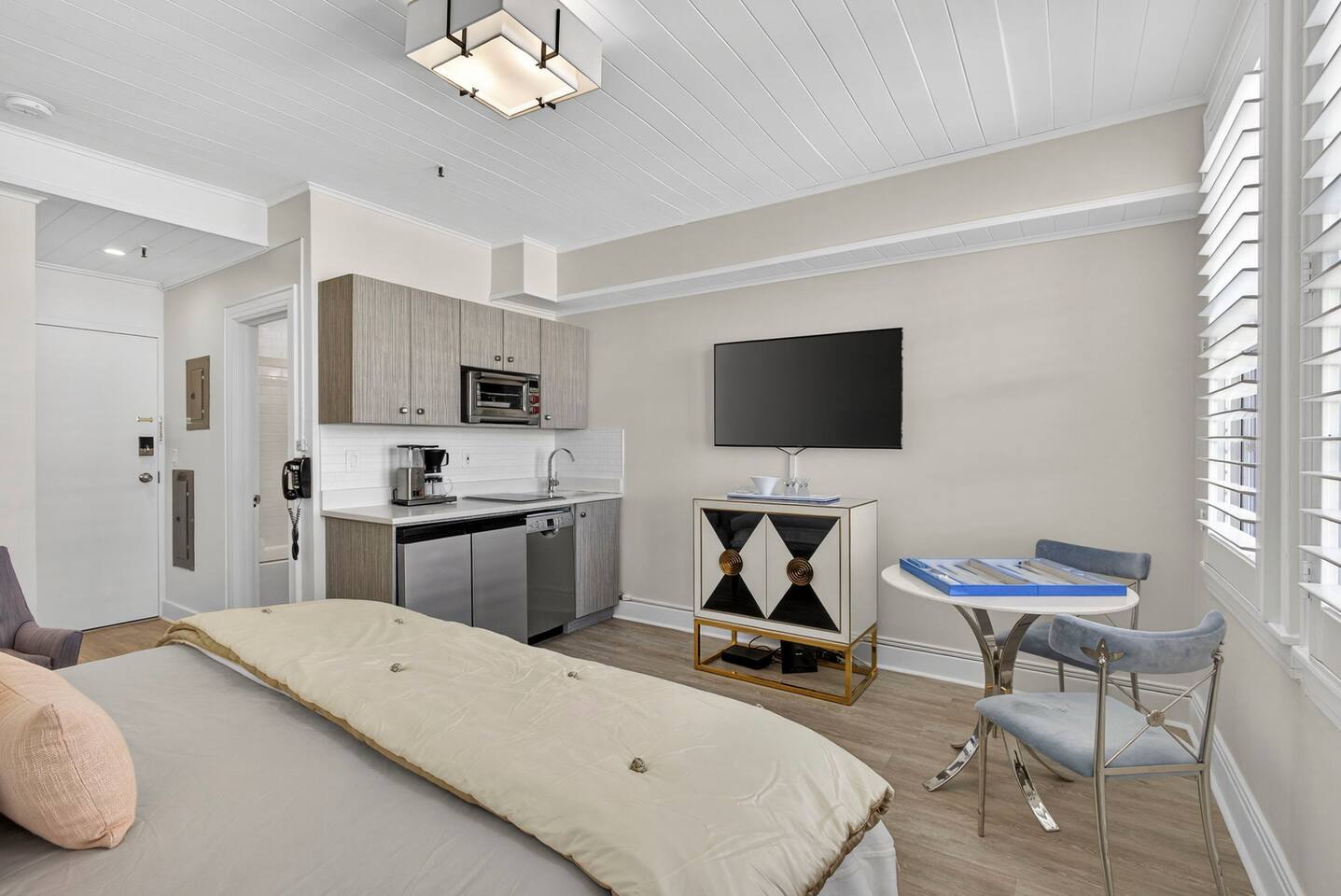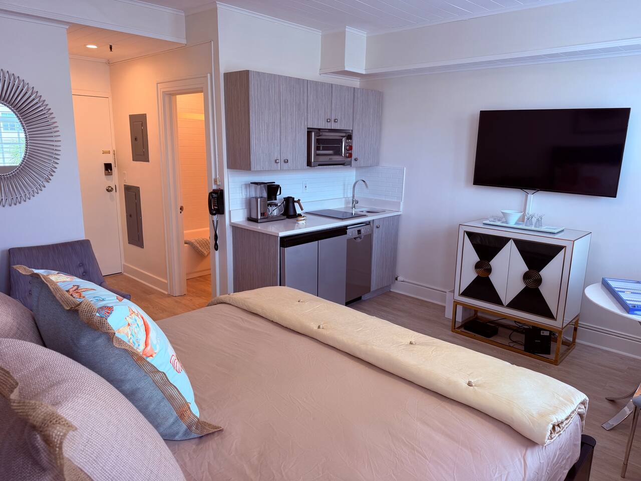 Welcome to Palm Beach Island! Stay in this beautifully remodeled condo, just blocks from the beach and surrounded by a heated pool, restaurants, cafes, shopping, and parks. Walk everywhere or rent a bike to explore. Located in the gorgeous Palm Beach Hotel, you’re just half a mile from downtown West Palm Beach. Beach chairs, an umbrella, and a cooler are included for free, making your beach day even easier. ✔ Front Desk for easy check-in!