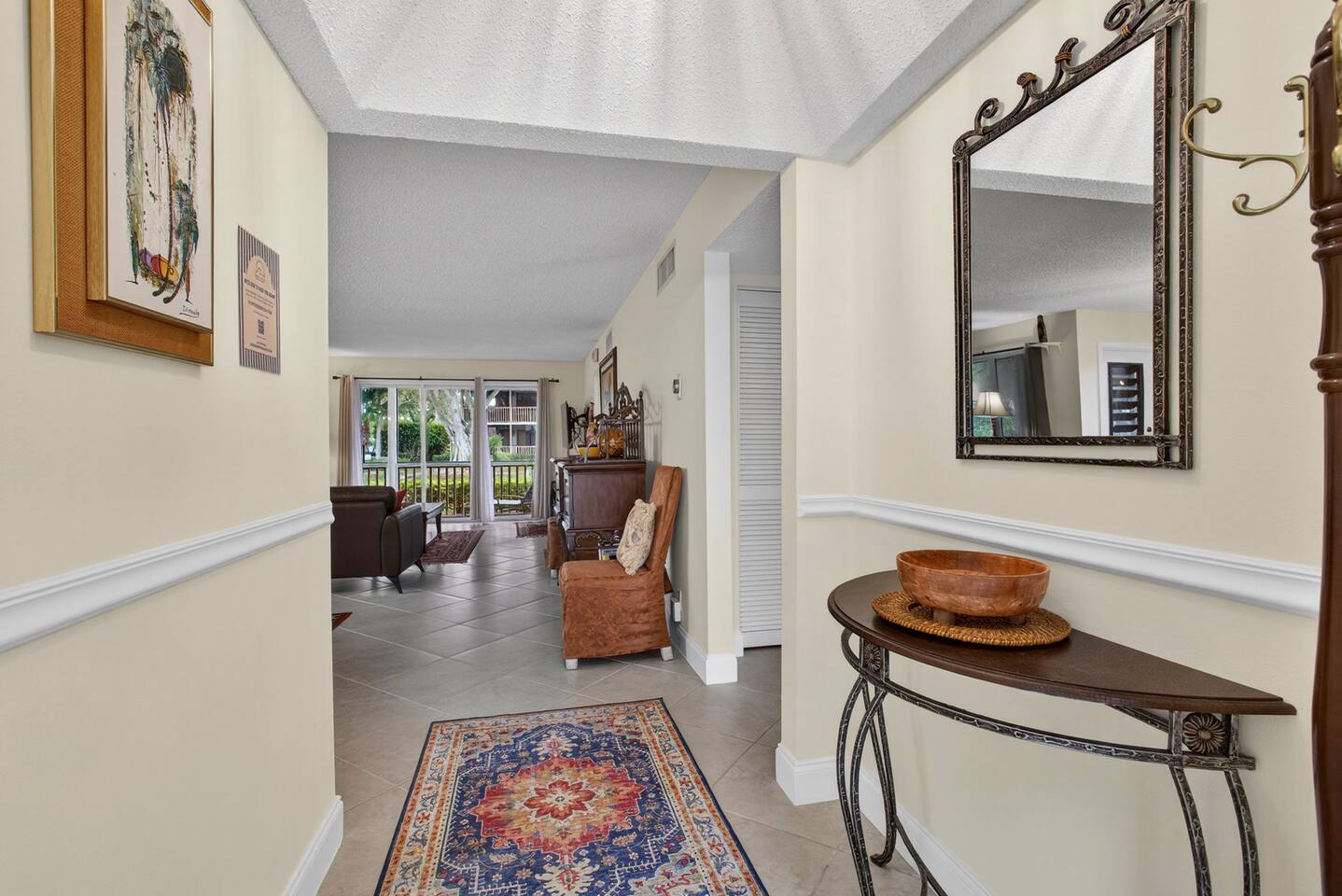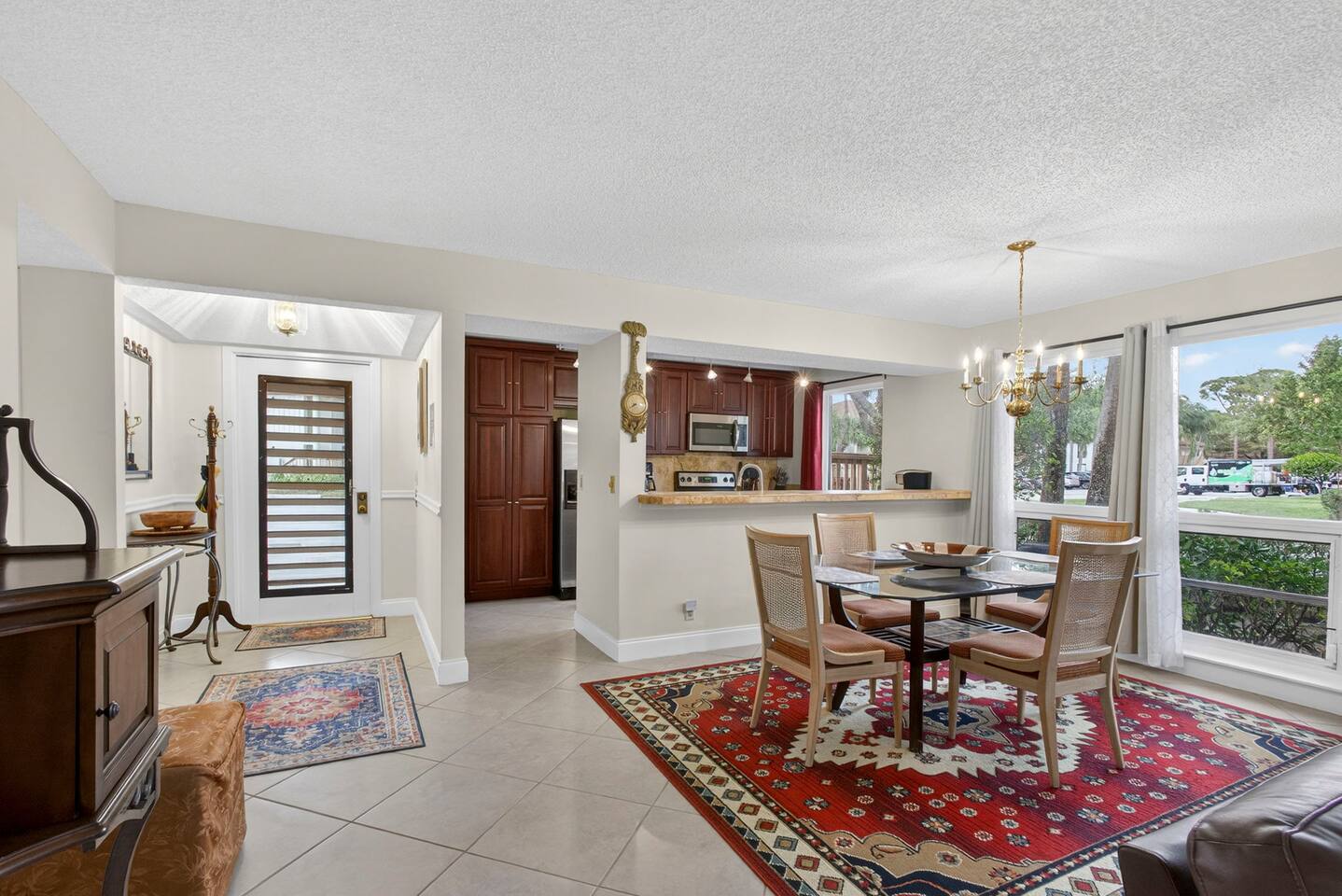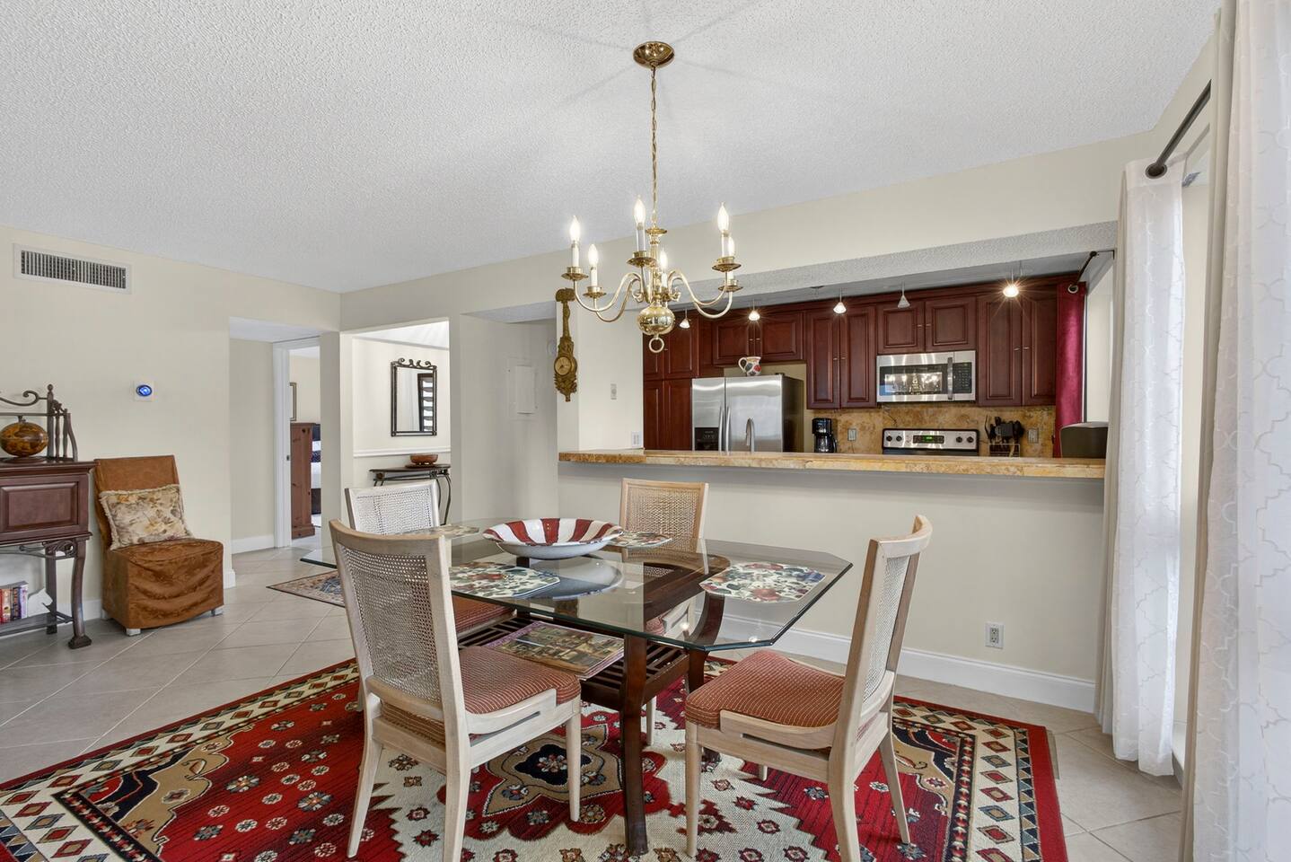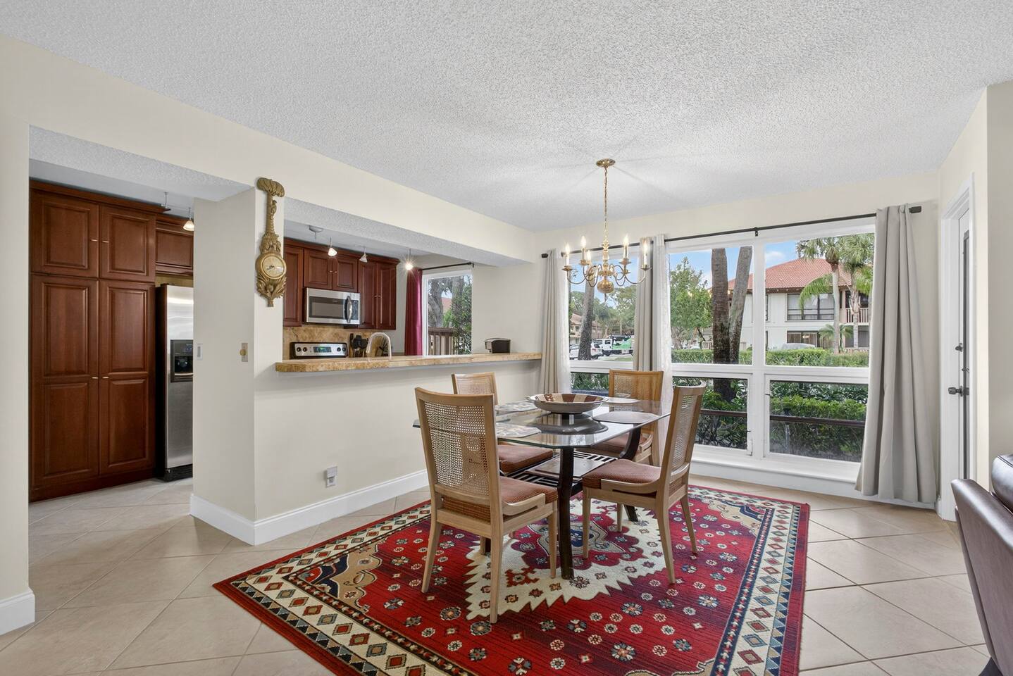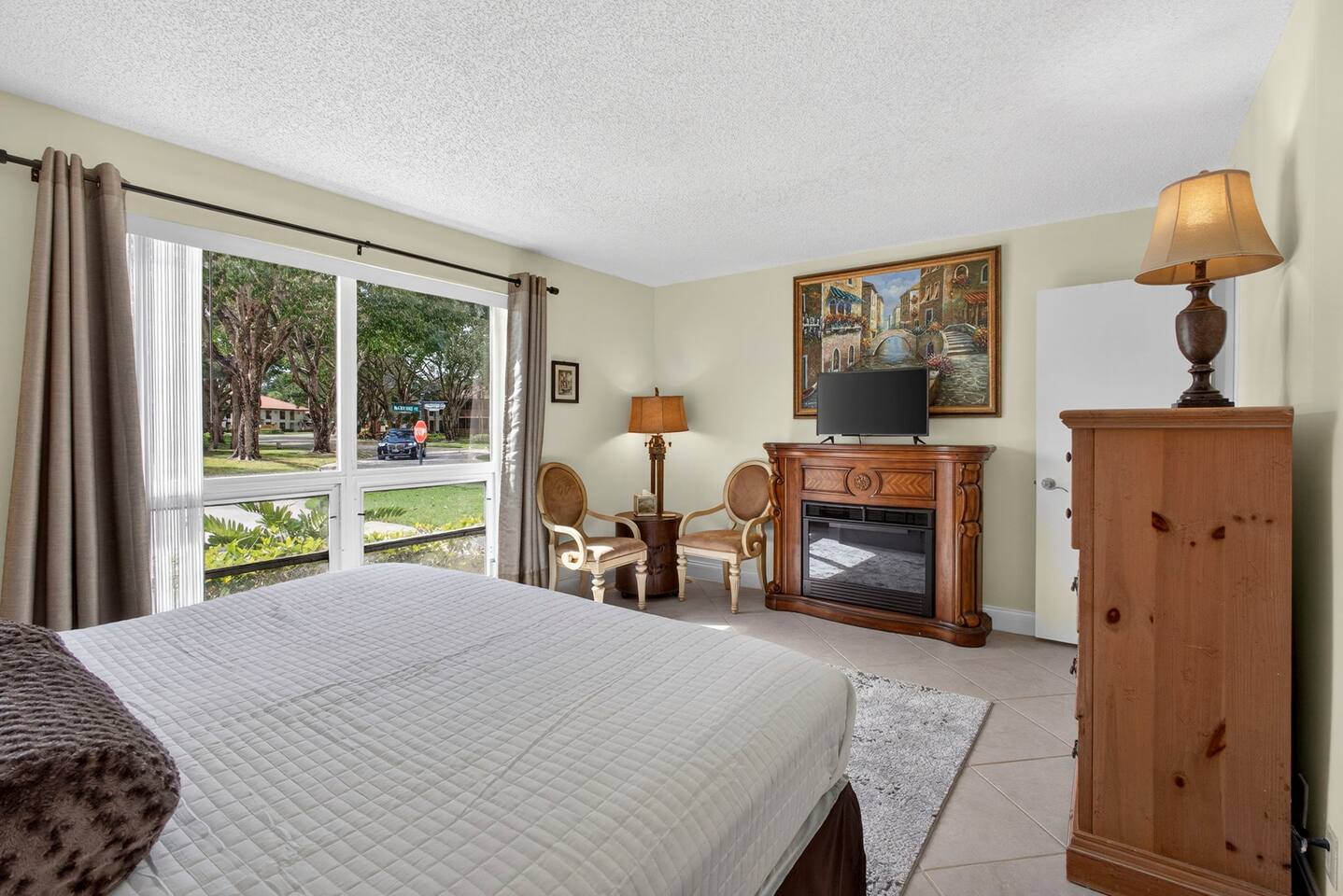 • Bright and spacious 2-bedroom, 2-bath first-floor Golf Villa • Enjoy peaceful canal views from the screened-in porch and lanai, ideal for morning coffee or evening relaxation • Newly renovated kitchen featuring granite countertops, stainless steel appliances, cherry cabinetry, and a fully stocked kitchen with everything you need to feel at home • Inviting living area with a comfortable sofa and flat-screen TV, perfect for unwinding after a day out • Both bedrooms offer king-size beds, flat-screen TVs, generous dresser space, and walk-in closets for a true retreat experience • Screened-in wraparound patio with cozy lounge seating for outdoor living • Access to a heated community pool for year-round enjoyment • Pet-friendly accommodations for one dog • Free parking conveniently located directly in front of the unit • Fresh linens and towels provided for your stay • Complimentary high-speed Wi-Fi