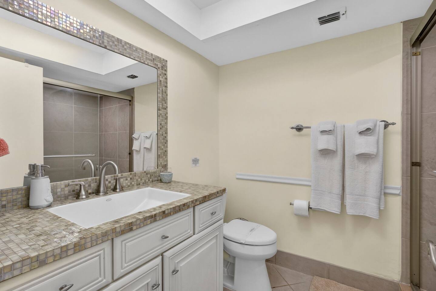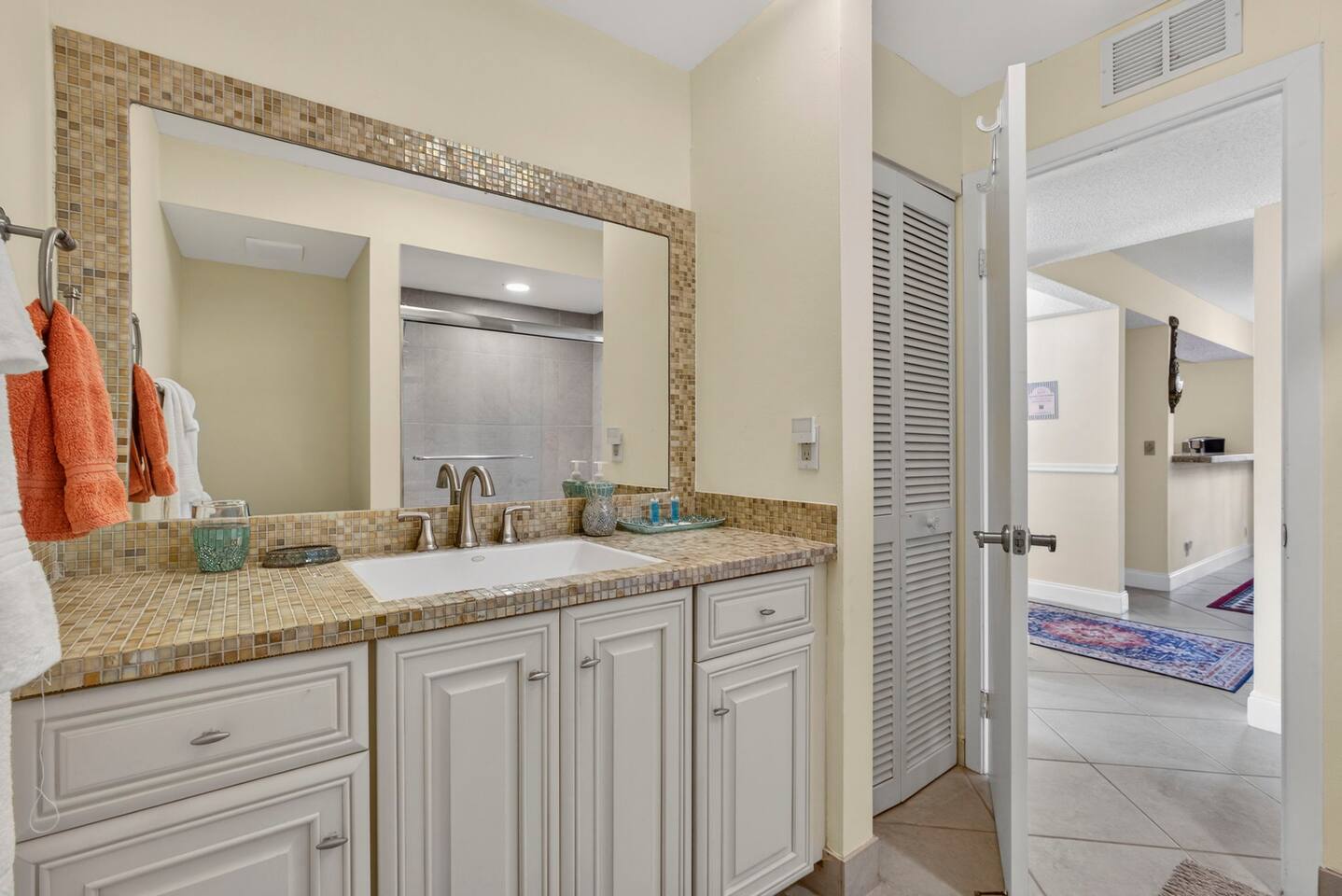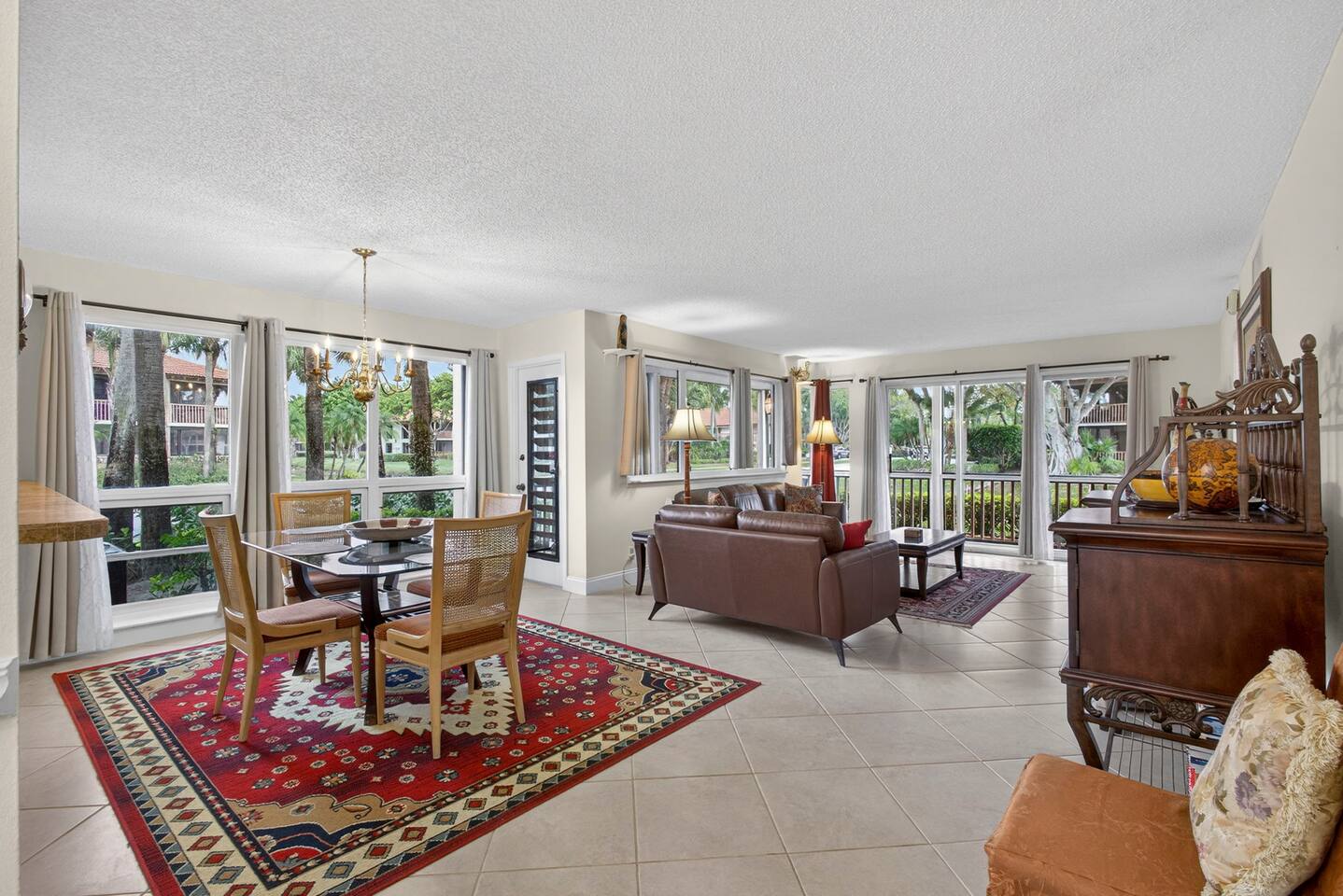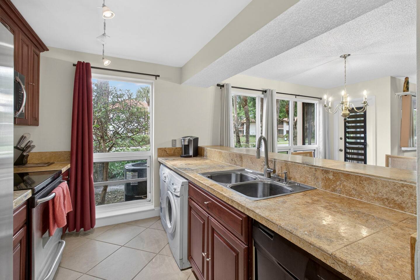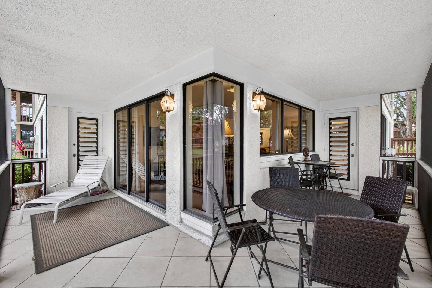 • Bright and spacious 2-bedroom, 2-bath first-floor Golf Villa • Enjoy peaceful canal views from the screened-in porch and lanai, ideal for morning coffee or evening relaxation • Newly renovated kitchen featuring granite countertops, stainless steel appliances, cherry cabinetry, and a fully stocked kitchen with everything you need to feel at home • Inviting living area with a comfortable sofa and flat-screen TV, perfect for unwinding after a day out • Both bedrooms offer king-size beds, flat-screen TVs, generous dresser space, and walk-in closets for a true retreat experience • Screened-in wraparound patio with cozy lounge seating for outdoor living • Access to a heated community pool for year-round enjoyment • Pet-friendly accommodations for one dog • Free parking conveniently located directly in front of the unit • Fresh linens and towels provided for your stay • Complimentary high-speed Wi-Fi