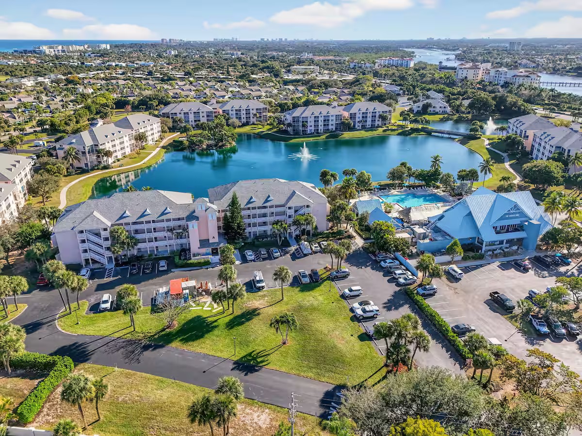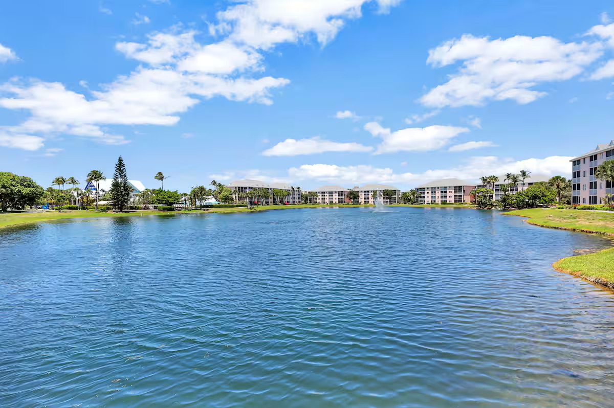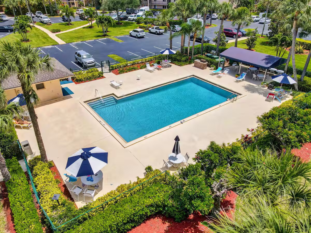 Welcome to your perfect South Florida getaway at Jupiter Bay Resort. This spacious and beautifully maintained 2-bedroom, 2-bathroom condo comfortably sleeps 6 guests, making it ideal for families, couples, or a friends’ escape to paradise. The primary bedroom features a comfortable king bed with a private en-suite bathroom. The second bedroom offers additional sleeping space. With two full bathrooms, everyone has plenty of space to relax and get ready for the day. The bright, open living area is designed for comfort and convenience, complete with Smart TVs so you can stream all your favorite apps like Netflix, Hulu, Disney+, and more. The fully stocked kitchen has everything you need to feel at home, including cookware, dishes, utensils, and a coffee maker—perfect for preparing anything from a quick breakfast to a full family dinner. Step outside to the private screened-in lanai porch and enjoy your morning coffee or unwind in the evening while taking in the peaceful Florida breeze. Guests also have access to the heated community pool and beautifully maintained grounds, offering a relaxing resort-style atmosphere throughout your stay. Centrally located in the heart of Jupiter, the condo is just minutes from the area’s beautiful beaches, waterfront dining and shopping at Harbourside Place, golf courses, boating, and outdoor adventures. Whether you're here to relax by the pool, spend the day at the beach, or explore everything Jupiter has to offer, this condo is the perfect home base for your stay.