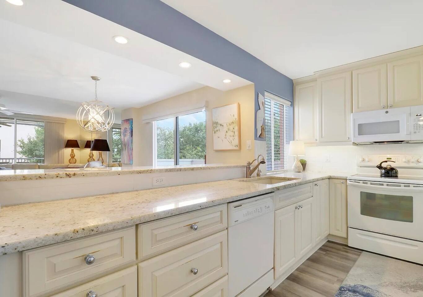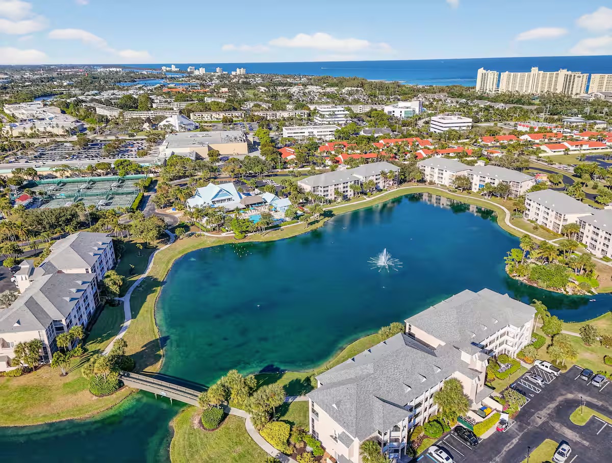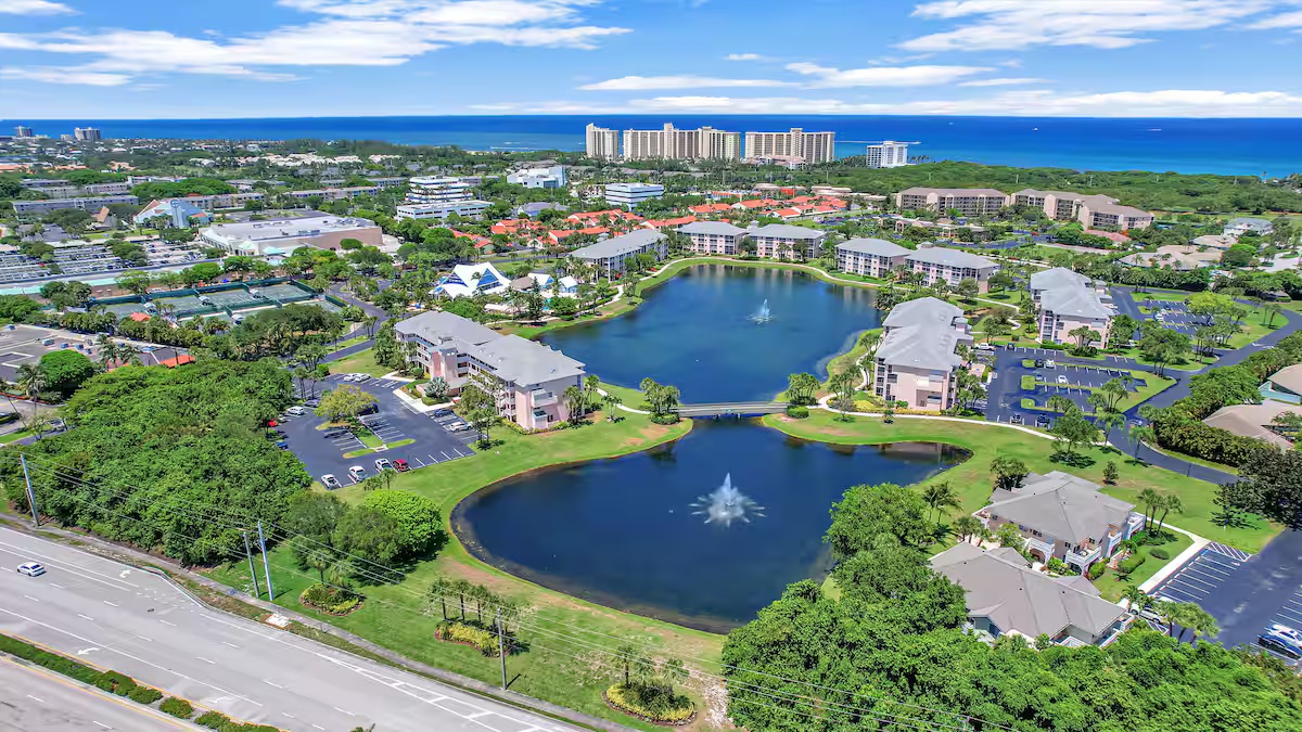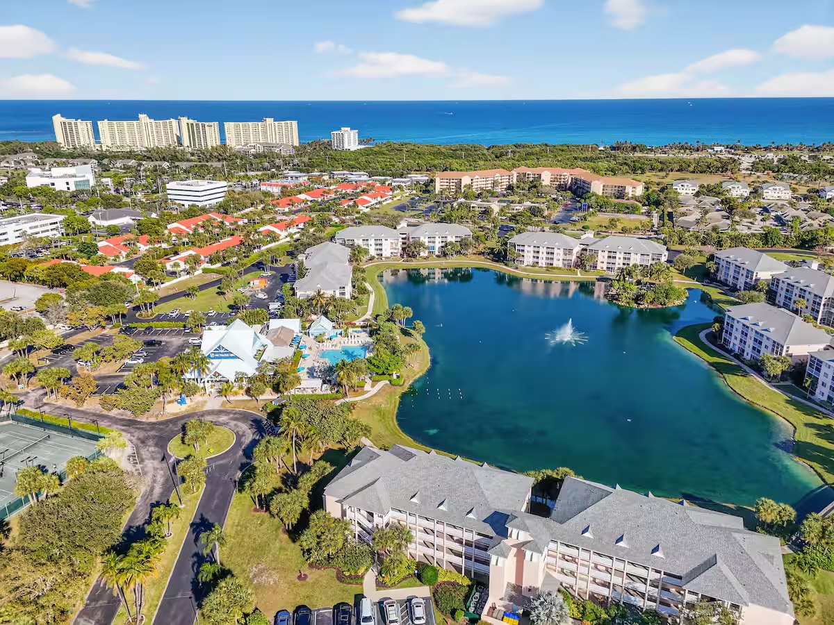 Welcome to your perfect South Florida getaway at Jupiter Bay Resort. This spacious and beautifully maintained 2-bedroom, 2-bathroom condo comfortably sleeps 6 guests, making it ideal for families, couples, or a friends’ escape to paradise. The primary bedroom features a comfortable king bed with a private en-suite bathroom. The second bedroom offers additional sleeping space. With two full bathrooms, everyone has plenty of space to relax and get ready for the day. The bright, open living area is designed for comfort and convenience, complete with Smart TVs so you can stream all your favorite apps like Netflix, Hulu, Disney+, and more. The fully stocked kitchen has everything you need to feel at home, including cookware, dishes, utensils, and a coffee maker—perfect for preparing anything from a quick breakfast to a full family dinner. Step outside to the private screened-in lanai porch and enjoy your morning coffee or unwind in the evening while taking in the peaceful Florida breeze. Guests also have access to the heated community pool and beautifully maintained grounds, offering a relaxing resort-style atmosphere throughout your stay. Centrally located in the heart of Jupiter, the condo is just minutes from the area’s beautiful beaches, waterfront dining and shopping at Harbourside Place, golf courses, boating, and outdoor adventures. Whether you're here to relax by the pool, spend the day at the beach, or explore everything Jupiter has to offer, this condo is the perfect home base for your stay.