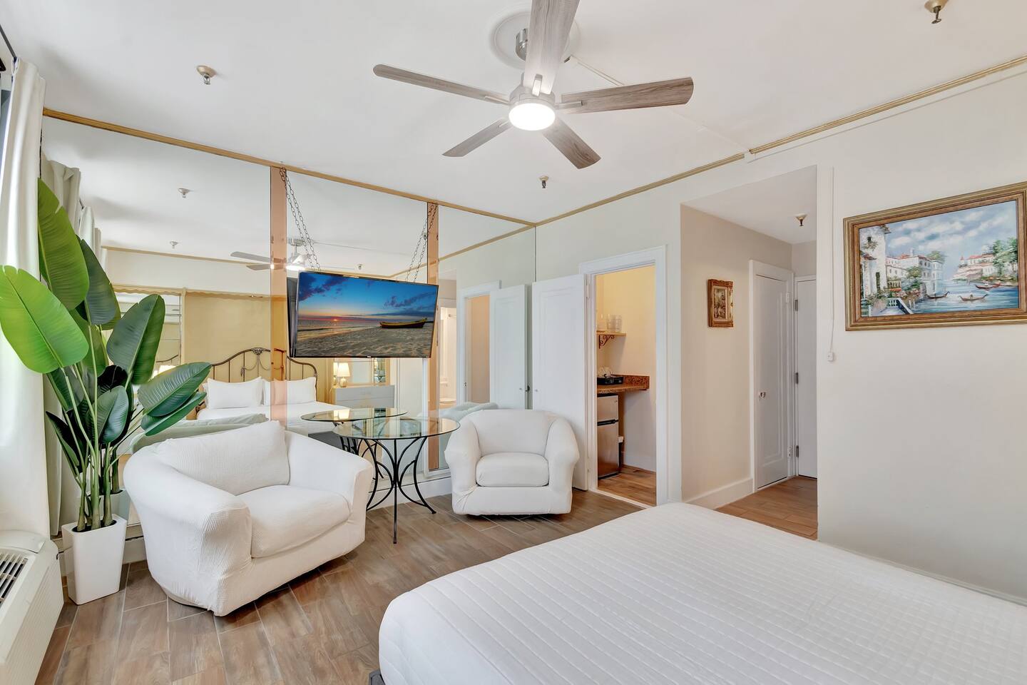 Welcome to Palm Beach Island! Stay in this beautiful condo with a rare Sunrise Ave view, just two blocks from the beach and surrounded by a heated pool, restaurants, cafes, shopping, and parks. Walk everywhere or rent a bike to explore. Located in the gorgeous Palm Beach Hotel, you’re just half a mile from downtown West Palm Beach. Beach chairs, an umbrella, and a cooler are included for free, making your beach day even easier. ✔ Limited Valet Parking ✔ Front Desk for easy check-in!