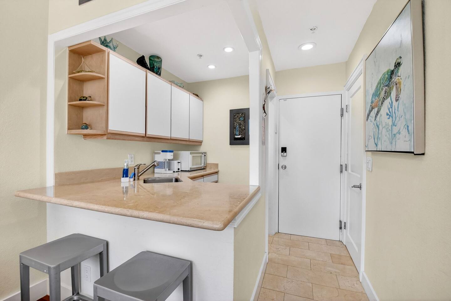 ✔ 1 Bedroom Condo with Private Living Room, Separate Bedroom, Full Kitchen and Bathroom ✔ Gorgeous view overlooking the garden and courtyard ✔ Full Size Gourmet kitchen with full fridge, microwave, plates, bowls, mugs, wine glasses, knives, cutting boards, 2 burner hot plate, and a Keurig coffee maker with coffee, sugar + creamers.. we have it all! ✔ Queen bed with plush pillows and fresh sheets ✔ Large walk-in closet to store suitcases and hang clothes ✔ Colorful beach towels for the pool + beach ✔ Bath towels, hand towels & washcloths with bar soap & shampoo/conditioner ✔ Beach chairs, beach umbrella, and cooler provided! ✔ Ironing board and iron ✔ Hair dryer ✔ Large flat screen TV with apps ✔ Free WiFi throughout the building ✔ Infant Pack N Play available in the room at no extra cost ✔ Automatic AC and overhead ceiling fan ✔ Bar area with barstools to relax in and enjoy. ✔ Living room area with Couch to sit and relax in ✔ Mezzanine and library within the building with books, games, and lounge space ✔ $15/day Valet Parking with limited spots (not guaranteed) ✔ Street Parking: 3-hour metered spots from 9 AM - 5 PM, * overnight parking is free*