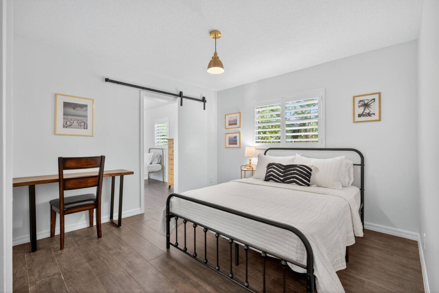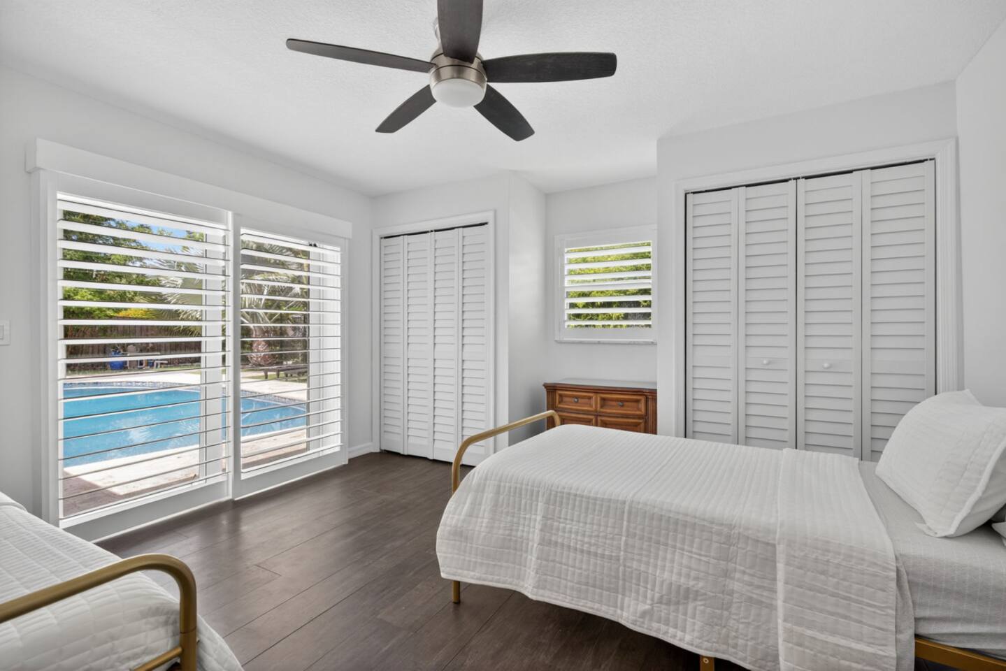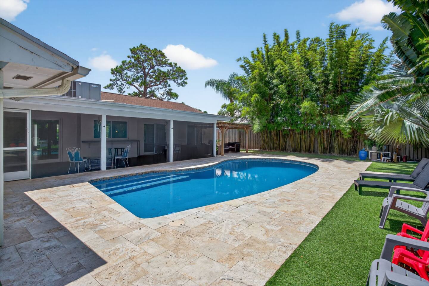 Spacious 4BR Retreat w/ Private Heated Pool, Pet Friendly, Canal Views & Outdoor Oasis! HEATED POOL + KID + PET FRIENDLY! Unwind in this beautifully renovated 4-bedroom, 2-bath home featuring over 2,100 sq ft of open living space and a private tropical backyard perfect for relaxing or entertaining. Enjoy the 8’ deep heated pool, synthetic turf, BBQ grill, and a screened-in patio. Fully fenced yard—perfect for pets and kids! The property is on peaceful canal—no rear neighbors for ultimate privacy! The home offers a flexible layout, a gourmet kitchen with stainless steel appliances, large coffee bar, and plenty of natural light. All windows feature premium window coverings. Perfect for families or groups seeking comfort, space, and a true Florida outdoor experience and a backyard oasis you won’t want to leave. Just minutes from beaches, golf, shopping, dining, and walking distance to Palm Beach Gardens Farmers Market. **Why You’ll Love It:** •Private heated pool & screened-in patio (no extra cost) •Quiet canal views with no rear neighbors •Fully fenced yard – pet & kid friendly •Synthetic turf & BBQ grill •Large coffee bar •Flexible sleeping arrangements •Full 2020 renovation with newer AC •Close to beaches, shopping, dining & more •Bring your furry friends! **Prime location:** -20 min to PBI airport -10 mins world class beaches -15 min to downtown West Palm Beach -10 mins to Roger Dean Stadium -5 min to Palm Beach Ice Plex -5 min to North County Park -5 mins to Burns Road Recreation Center -1 hr to FLL airport **Sleeping configuration:** **Four rooms:** Master Suite: king bed Bedroom 1: queen bed Bedroom 2: queen bed Bedroom 3: queen bed, two twins **The queen bed is in a separate room from the two twins. The rooms are divided by a barn door.** We have a pack n play available for you to use during your stay! Beach chairs, beach towels, a cooler and a beach umbrella available at the house for you to use! $200 pet fee We also have a pool fence for your children's safety that we can install, please just ask!