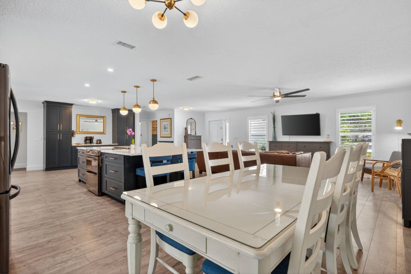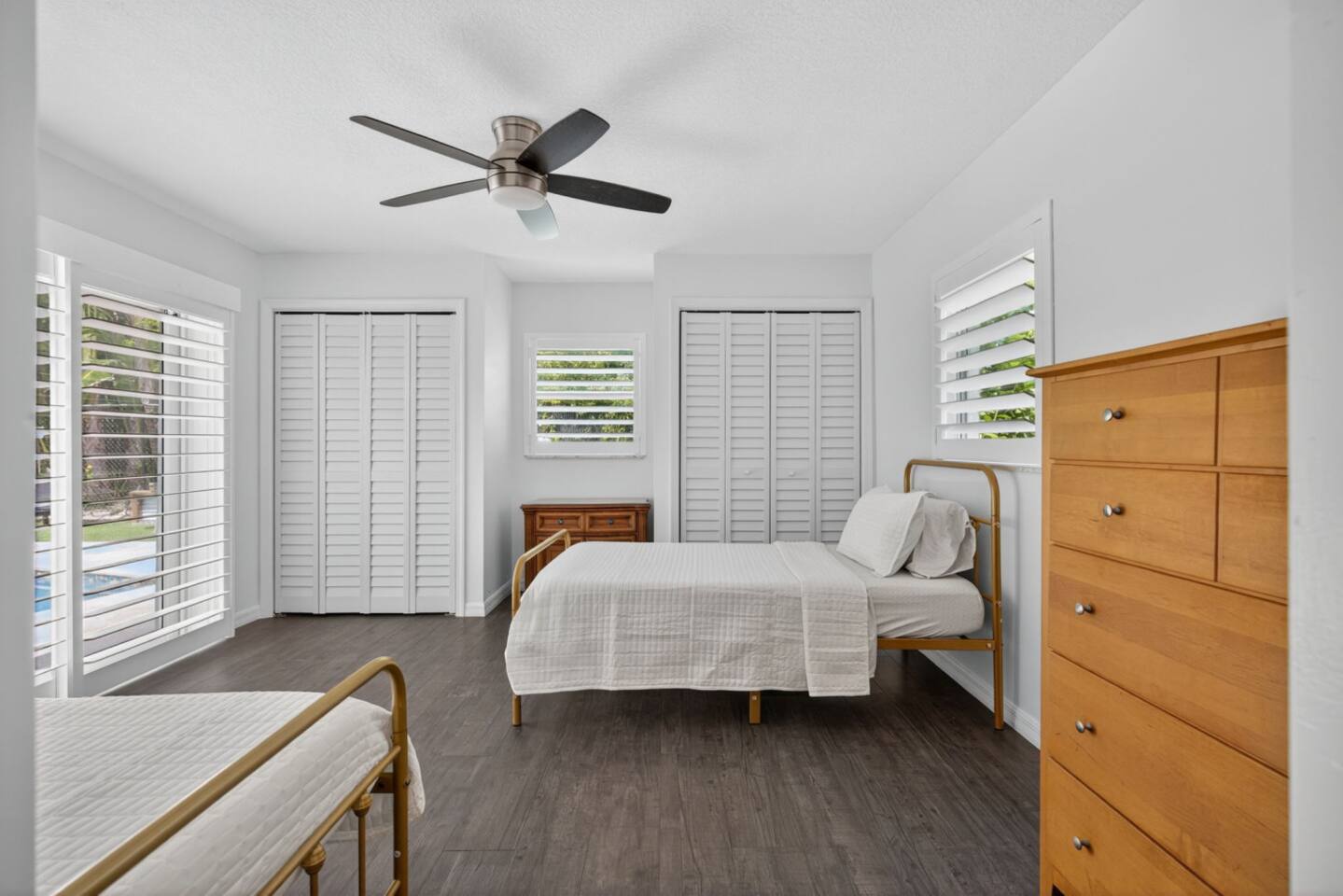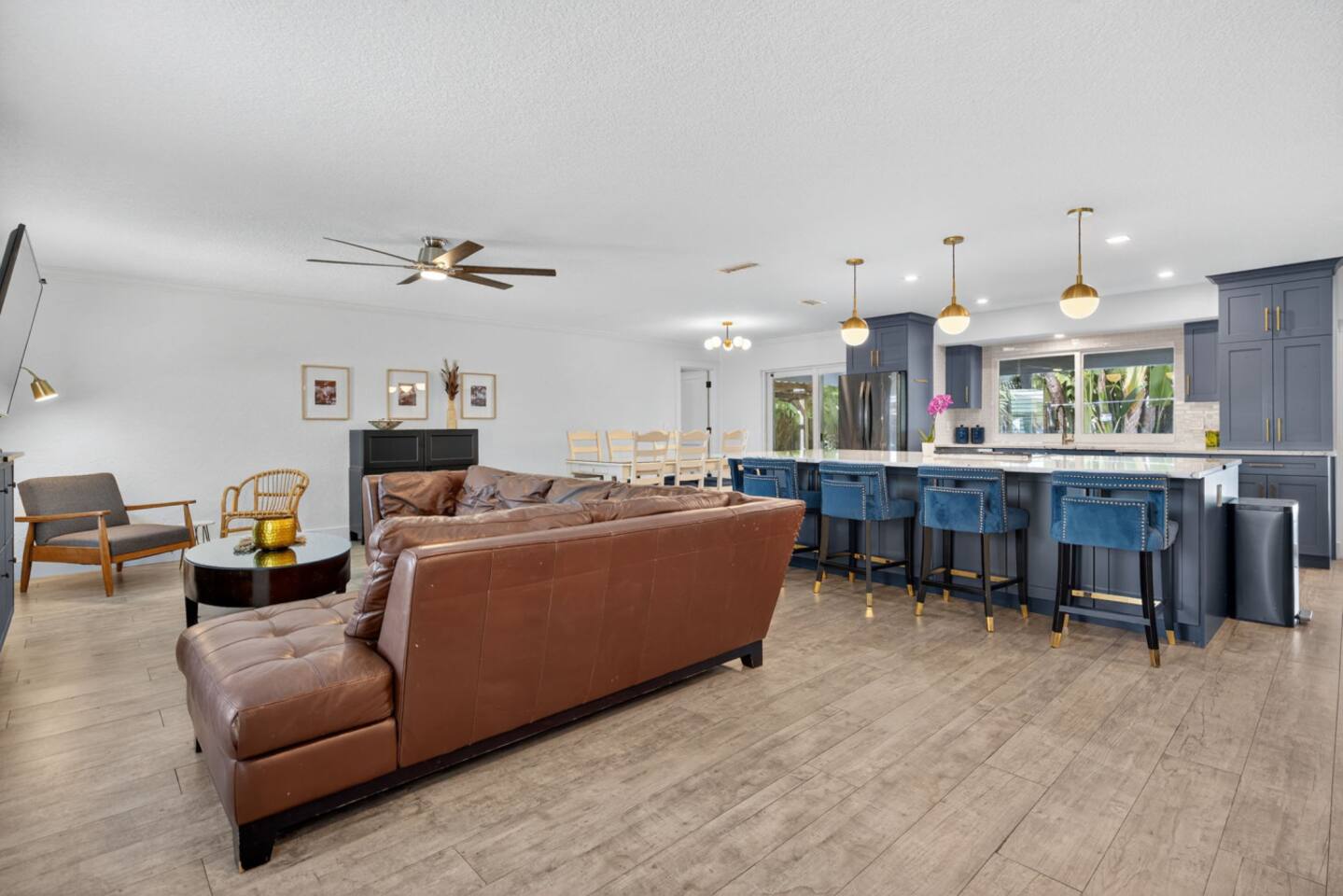 Spacious 4BR Retreat w/ Private Heated Pool, Pet Friendly, Canal Views & Outdoor Oasis! HEATED POOL + KID + PET FRIENDLY! Unwind in this beautifully renovated 4-bedroom, 2-bath home featuring over 2,100 sq ft of open living space and a private tropical backyard perfect for relaxing or entertaining. Enjoy the 8’ deep heated pool, synthetic turf, BBQ grill, and a screened-in patio. Fully fenced yard—perfect for pets and kids! The property is on peaceful canal—no rear neighbors for ultimate privacy! The home offers a flexible layout, a gourmet kitchen with stainless steel appliances, large coffee bar, and plenty of natural light. All windows feature premium window coverings. Perfect for families or groups seeking comfort, space, and a true Florida outdoor experience and a backyard oasis you won’t want to leave. Just minutes from beaches, golf, shopping, dining, and walking distance to Palm Beach Gardens Farmers Market. **Why You’ll Love It:** •Private heated pool & screened-in patio (no extra cost) •Quiet canal views with no rear neighbors •Fully fenced yard – pet & kid friendly •Synthetic turf & BBQ grill •Large coffee bar •Flexible sleeping arrangements •Full 2020 renovation with newer AC •Close to beaches, shopping, dining & more •Bring your furry friends! **Prime location:** -20 min to PBI airport -10 mins world class beaches -15 min to downtown West Palm Beach -10 mins to Roger Dean Stadium -5 min to Palm Beach Ice Plex -5 min to North County Park -5 mins to Burns Road Recreation Center -1 hr to FLL airport **Sleeping configuration:** **Four rooms:** Master Suite: king bed Bedroom 1: queen bed Bedroom 2: queen bed Bedroom 3: queen bed, two twins **The queen bed is in a separate room from the two twins. The rooms are divided by a barn door.** We have a pack n play available for you to use during your stay! Beach chairs, beach towels, a cooler and a beach umbrella available at the house for you to use! $200 pet fee We also have a pool fence for your children's safety that we can install, please just ask!