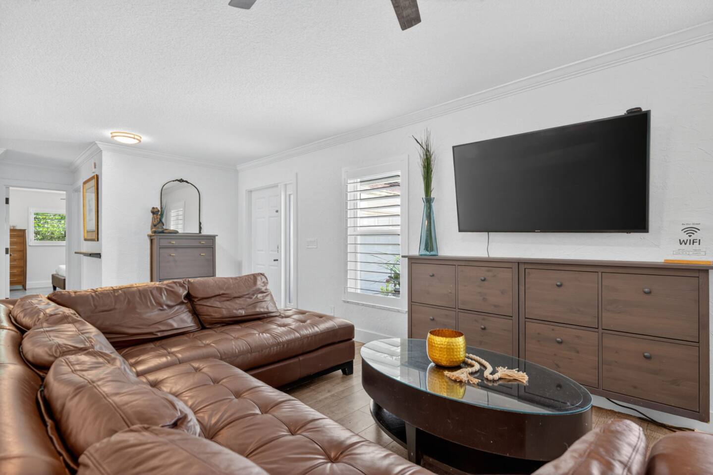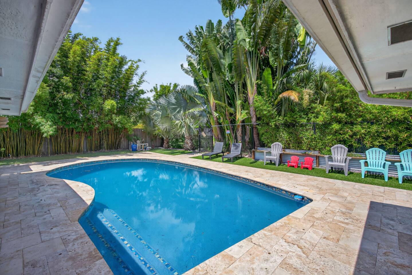 Welcome to Poinciana Palms! HEATED POOL! PET AND KID FRIENDLY! This stylish 4BR/2BA home offers a split floor plan, perfect for families or groups. Enjoy a private backyard oasis with a large heated pool, swaying palms, BBQ grill, and fully fenced yard—pet friendly, too! Peaceful yet central location, just 15 min to beaches, PBI & WPB. Walk to Publix; Whole Foods, dining & shopping nearby. Close to parks & attractions. Relax, unwind, and make lasting memories.