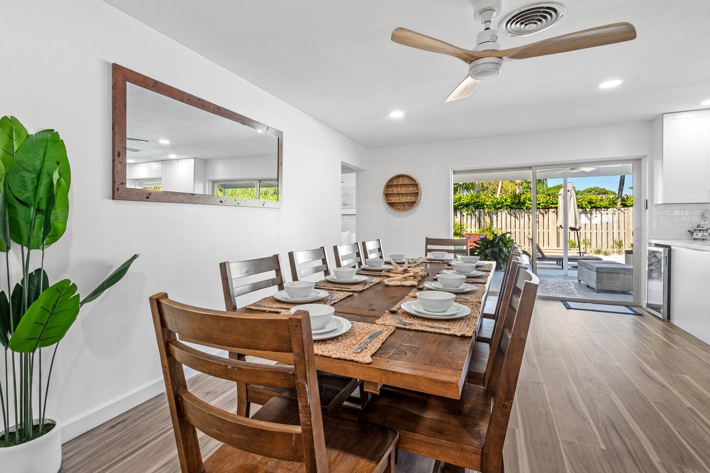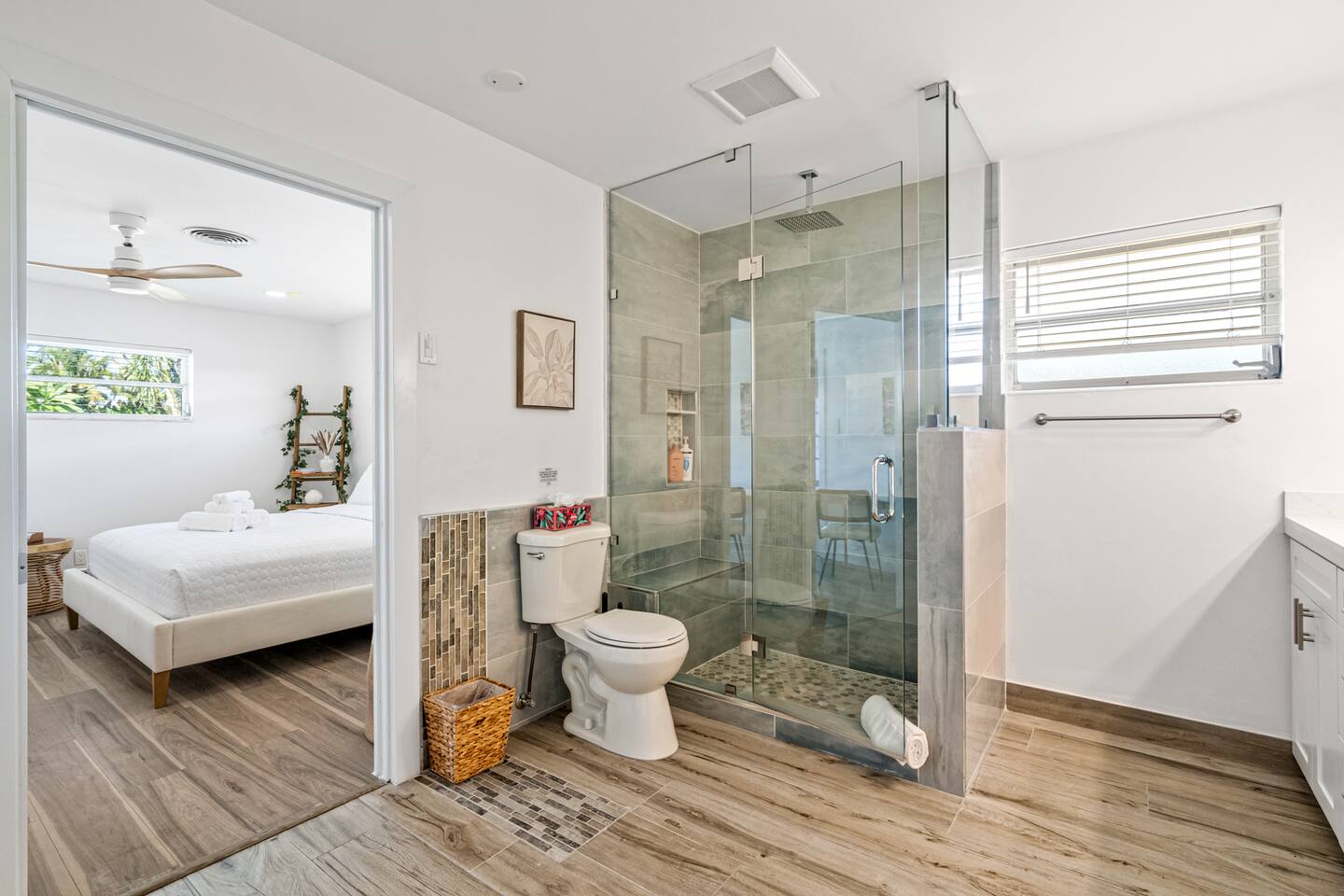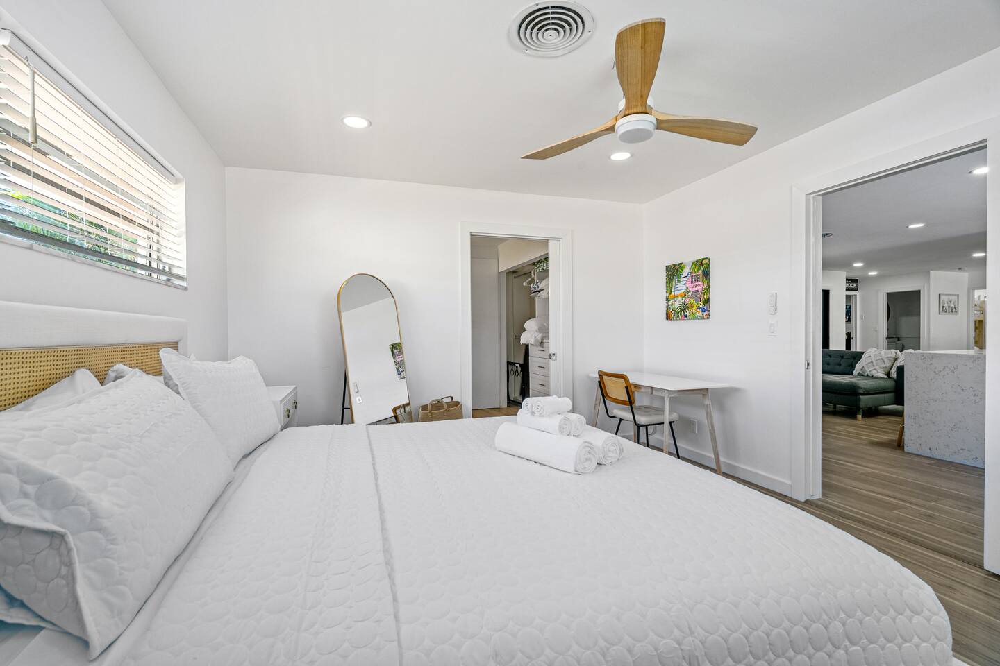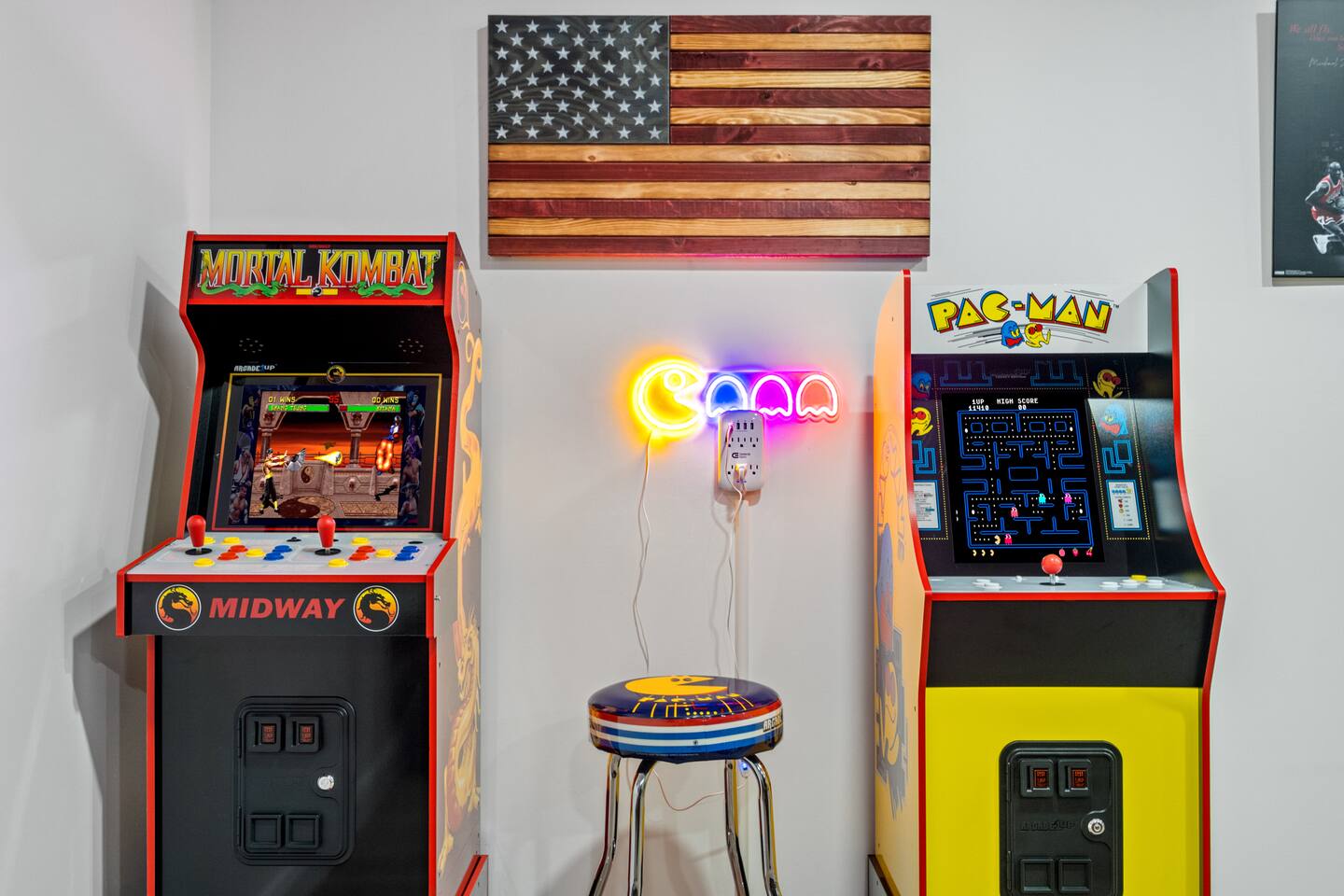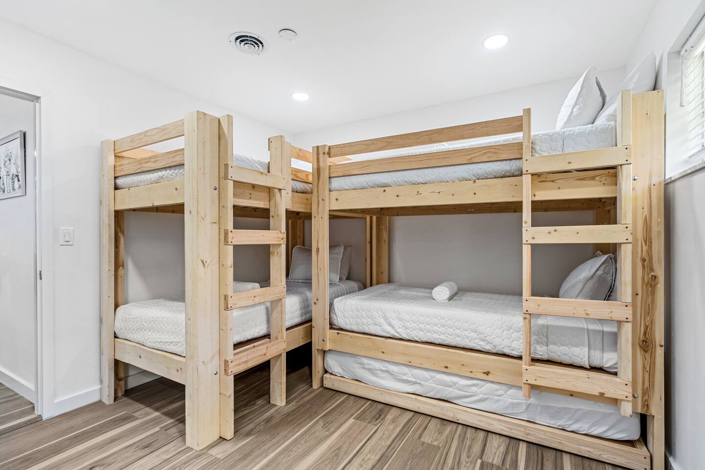 Our tropical retreat exudes a coastal charm with earthy tones and coastal-inspired decor. Recently renovated with four private bedrooms (with privacy locks) and 8 beds, we can accommodate up to 11 guests. The house's theme is centered around entertainment, health and wellness (did we mention we have a Game Room in the garage?), promoting a balanced and relaxing environment for our guests. The tropical backyard retreat is fenced in with a covered patio and lounge chairs for sunbathing next to the FREE HEATED POOL, HOT TUB, SAUNA, BBQ Grill, Outdoor TV and COLD PLUNGE. Enjoy cocktails by the pool with plenty of shade or sun- whichever you prefer! Inside the retreat, an 85-inch smart TV is a central fixture in the expansive open-floor-plan (kitchen, living room, and dining room are all one open space), with access to Xfinity cable and streaming apps. The large dining room table can seat ten guests. There is a private laundry inside the garage Game Room with a brand new washer and dryer. We provide laundry detergent, dryer sheets, and an iron and ironing board. The garage Game Room features a big-screen TV, Xbox, pool table, ping pong, air hockey, and two arcade video game cabinets! Brand new central air conditioning and ceiling fans in every room keep the space cool, even during Florida’s hottest months, and our large ice machine on the patio is perfect for getting the cold plunge ready or keeping your drinks chilled on ice! We do allow up to 2 dogs. Please indicate at booking, and include the pet fee in your reservation. There is a smart lock for the front door for an easy self-check-in process. BEDROOMS: The Master Suite has a luxurious, plush king-size bed and ensuite private bathroom with a walk-in closet. The Master Bathroom has a double sink vanity and a large overhead rain shower with plenty of pressure. The two (2) Queen bedrooms feature cozy and extremely comfortable queen-sized beds, ideal for couples or solo travelers. The main bathroom has a shower with a tub and a large sink area. The Bunk Room is perfect for the kids or a group of friends, with five comfy beds (two bunk beds and a pull-out trundle). KITCHEN & INDOOR AMENITIES: The open kitchen has been updated with a new large kitchen island with barstools and Quartz counters. We have all the dishes, cups and glasses, utensils, cookware, appliances, coffee maker, blenders, etc. Our cleaning team leaves you with a 5-star "hotel quality" finish (just check our reviews!), providing all sheets, pillows, towels, plenty of beach towels, laundry detergent pods, dishwashing pods, paper towels, toilet paper, hand soap, dish soap, plates, bowls, glasses, etc. If you are missing something that can make your stay more enjoyable, please do not hesitate to ask! OUTDOOR AMENITIES: Step into the backyard, where a private Bali-inspired paradise awaits! Relax and rejuvenate in the sparkling pool, soak up the Florida sun on the comfortable lounge furniture, or unwind in the hot tub. For those seeking wellness, our sauna and cold plunge offer the perfect way to detox and refresh your body. An outdoor shower adds a touch of convenience after a dip in the pool or a day at the beach. Don't forget, you can enjoy the game by the pool on our large outdoor smart TV! ENTERTAINMENT: The Game Room in the garage is a haven for entertainment enthusiasts, featuring a big-screen TV, Xbox video game system, pool table, ping pong/air hockey, and arcade video game cabinets. We have numerous board games for the whole family. Hours of fun await you and your guests right at home! LOCATION: Nestled in Palm Beach Gardens, you'll have easy access to pristine beaches, world-class golf courses, shopping, dining, and various outdoor activities. Spring training is just a stone’s throw away! The best of Palm Beach Island is also at your fingertips... Whether you're seeking relaxation or adventure, our Palm Beach Gardens Retreat offers the ideal space to create lasting memories with family and friends. Book your stay today and experience the perfect blend of health, wellness, and fun in paradise!