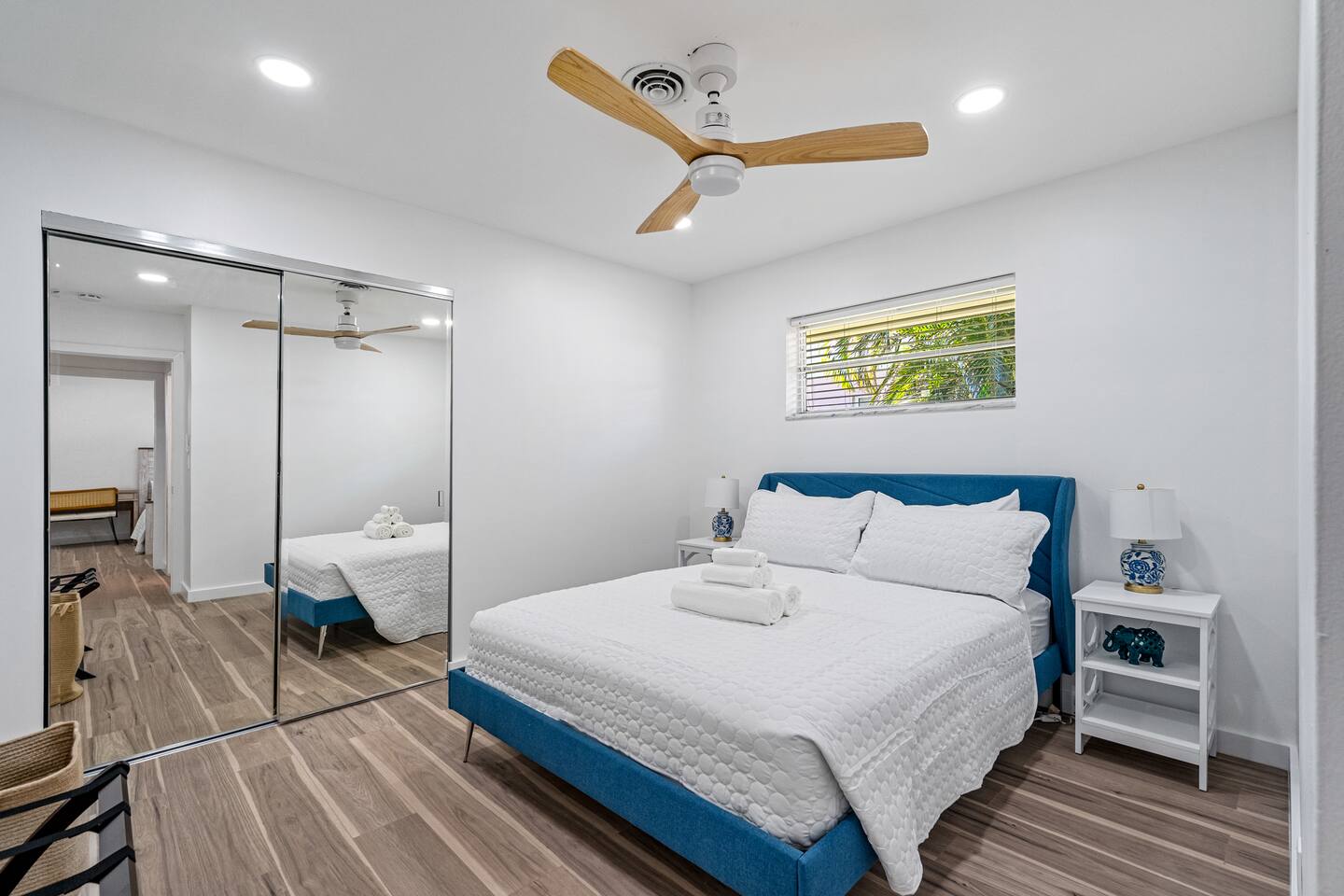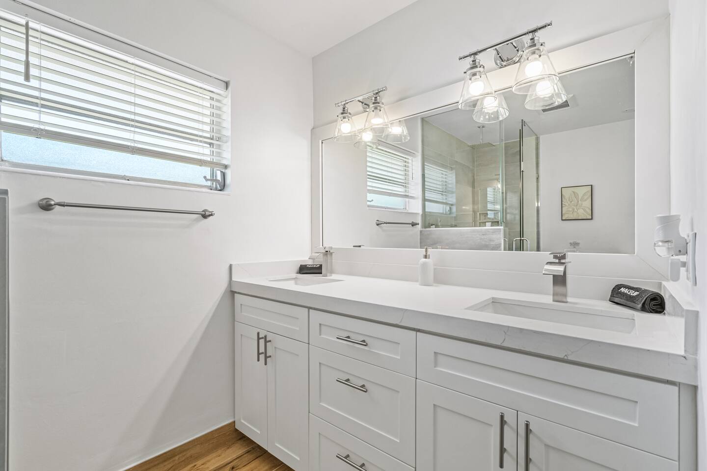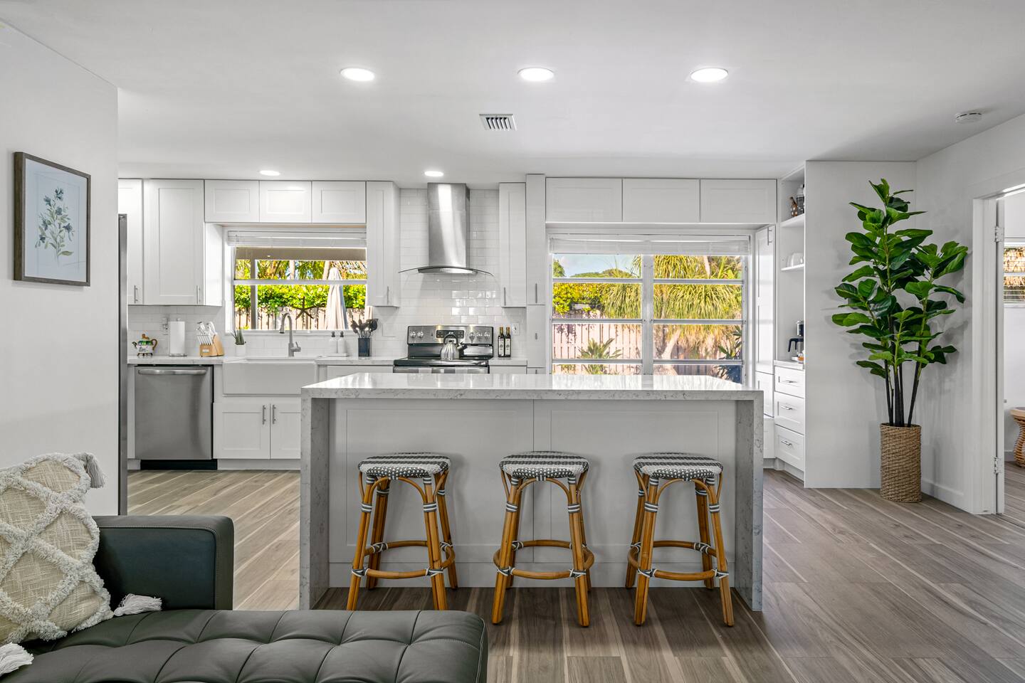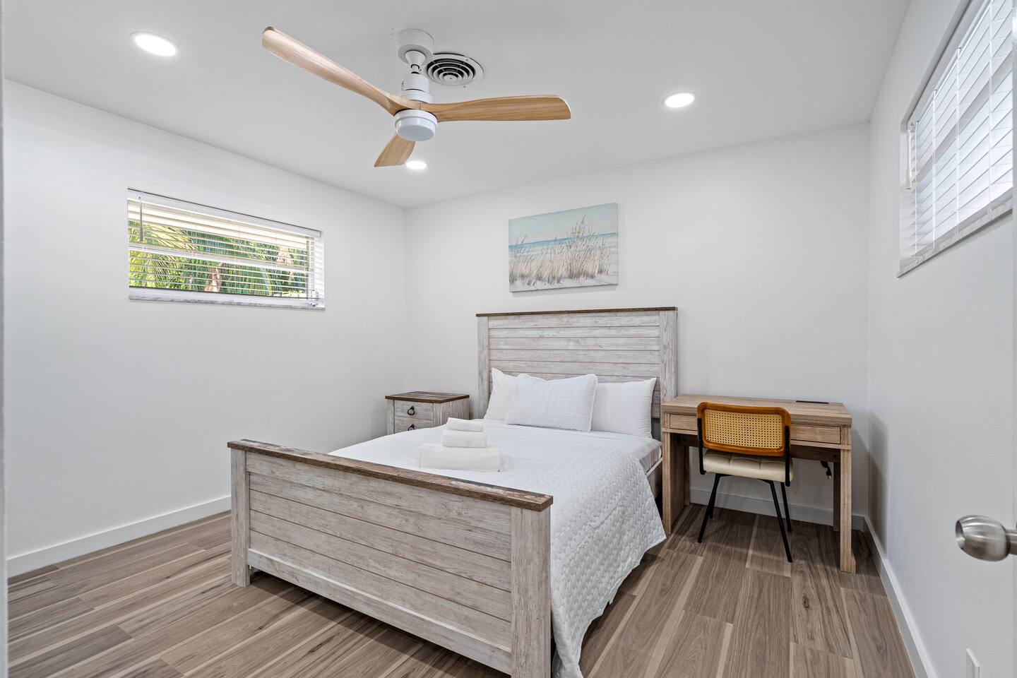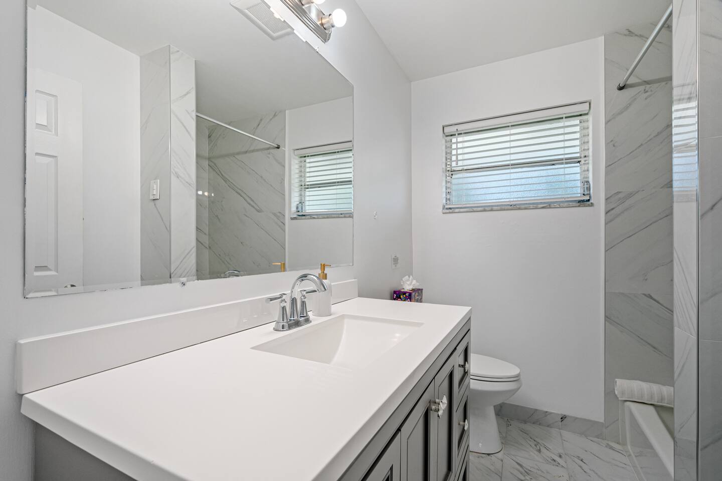 Our tropical retreat exudes a coastal charm with earthy tones and coastal-inspired decor. Recently renovated with four private bedrooms (with privacy locks) and 8 beds, we can accommodate up to 11 guests. The house's theme is centered around entertainment, health and wellness (did we mention we have a Game Room in the garage?), promoting a balanced and relaxing environment for our guests. The tropical backyard retreat is fenced in with a covered patio and lounge chairs for sunbathing next to the FREE HEATED POOL, HOT TUB, SAUNA, BBQ Grill, Outdoor TV and COLD PLUNGE. Enjoy cocktails by the pool with plenty of shade or sun- whichever you prefer! Inside the retreat, an 85-inch smart TV is a central fixture in the expansive open-floor-plan (kitchen, living room, and dining room are all one open space), with access to Xfinity cable and streaming apps. The large dining room table can seat ten guests. There is a private laundry inside the garage Game Room with a brand new washer and dryer. We provide laundry detergent, dryer sheets, and an iron and ironing board. The garage Game Room features a big-screen TV, Xbox, pool table, ping pong, air hockey, and two arcade video game cabinets! Brand new central air conditioning and ceiling fans in every room keep the space cool, even during Florida’s hottest months, and our large ice machine on the patio is perfect for getting the cold plunge ready or keeping your drinks chilled on ice! We do allow up to 2 dogs. Please indicate at booking, and include the pet fee in your reservation. There is a smart lock for the front door for an easy self-check-in process. BEDROOMS: The Master Suite has a luxurious, plush king-size bed and ensuite private bathroom with a walk-in closet. The Master Bathroom has a double sink vanity and a large overhead rain shower with plenty of pressure. The two (2) Queen bedrooms feature cozy and extremely comfortable queen-sized beds, ideal for couples or solo travelers. The main bathroom has a shower with a tub and a large sink area. The Bunk Room is perfect for the kids or a group of friends, with five comfy beds (two bunk beds and a pull-out trundle). KITCHEN & INDOOR AMENITIES: The open kitchen has been updated with a new large kitchen island with barstools and Quartz counters. We have all the dishes, cups and glasses, utensils, cookware, appliances, coffee maker, blenders, etc. Our cleaning team leaves you with a 5-star "hotel quality" finish (just check our reviews!), providing all sheets, pillows, towels, plenty of beach towels, laundry detergent pods, dishwashing pods, paper towels, toilet paper, hand soap, dish soap, plates, bowls, glasses, etc. If you are missing something that can make your stay more enjoyable, please do not hesitate to ask! OUTDOOR AMENITIES: Step into the backyard, where a private Bali-inspired paradise awaits! Relax and rejuvenate in the sparkling pool, soak up the Florida sun on the comfortable lounge furniture, or unwind in the hot tub. For those seeking wellness, our sauna and cold plunge offer the perfect way to detox and refresh your body. An outdoor shower adds a touch of convenience after a dip in the pool or a day at the beach. Don't forget, you can enjoy the game by the pool on our large outdoor smart TV! ENTERTAINMENT: The Game Room in the garage is a haven for entertainment enthusiasts, featuring a big-screen TV, Xbox video game system, pool table, ping pong/air hockey, and arcade video game cabinets. We have numerous board games for the whole family. Hours of fun await you and your guests right at home! LOCATION: Nestled in Palm Beach Gardens, you'll have easy access to pristine beaches, world-class golf courses, shopping, dining, and various outdoor activities. Spring training is just a stone’s throw away! The best of Palm Beach Island is also at your fingertips... Whether you're seeking relaxation or adventure, our Palm Beach Gardens Retreat offers the ideal space to create lasting memories with family and friends. Book your stay today and experience the perfect blend of health, wellness, and fun in paradise!