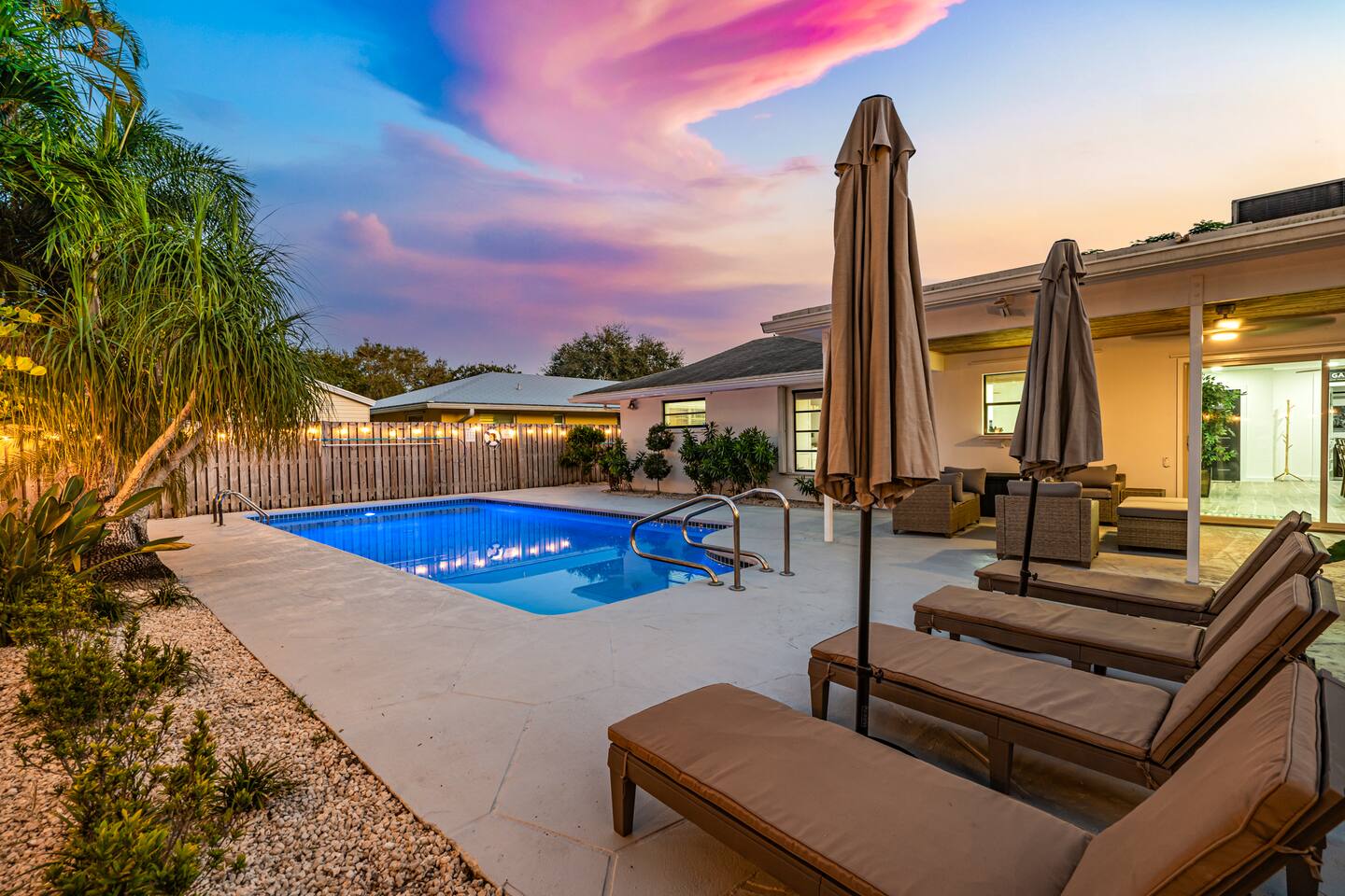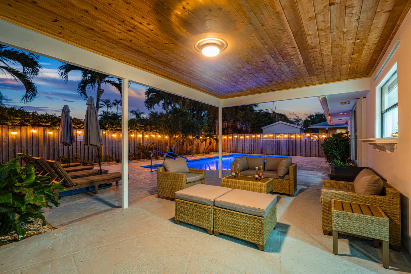 Welcome to “The Poinciana” A Palm Beach Retreat GAME ROOM, FREE HEATED POOL, HOT TUB, SAUNA, COLD PLUNGE & GAME ROOM. 15 mins from the beach! Our stunning 4-bedroom 2.5-bathroom tropical retreat in the heart of Palm Beach Gardens is where families & friends of all ages can escape & share entertainment, health & wellness. This spacious, family-friendly house comfortably sleeps 11 guests & offers the perfect oasis for your next vacation. Smart TVs, Wifi, private laundry, & a stocked kitchen.